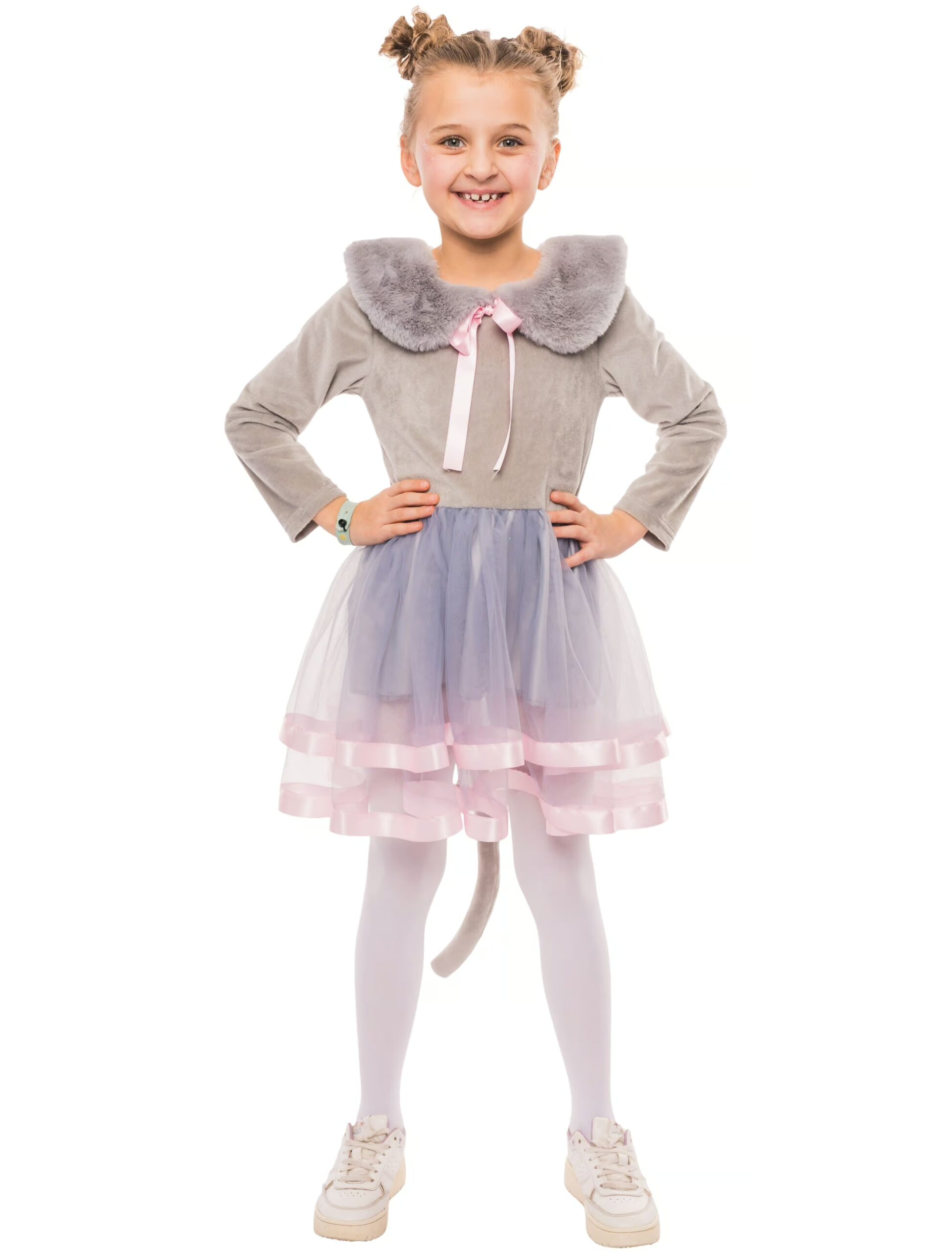 Kleid Mäuschen mit Schleife grau 104, ideal für Karneval & Fasching