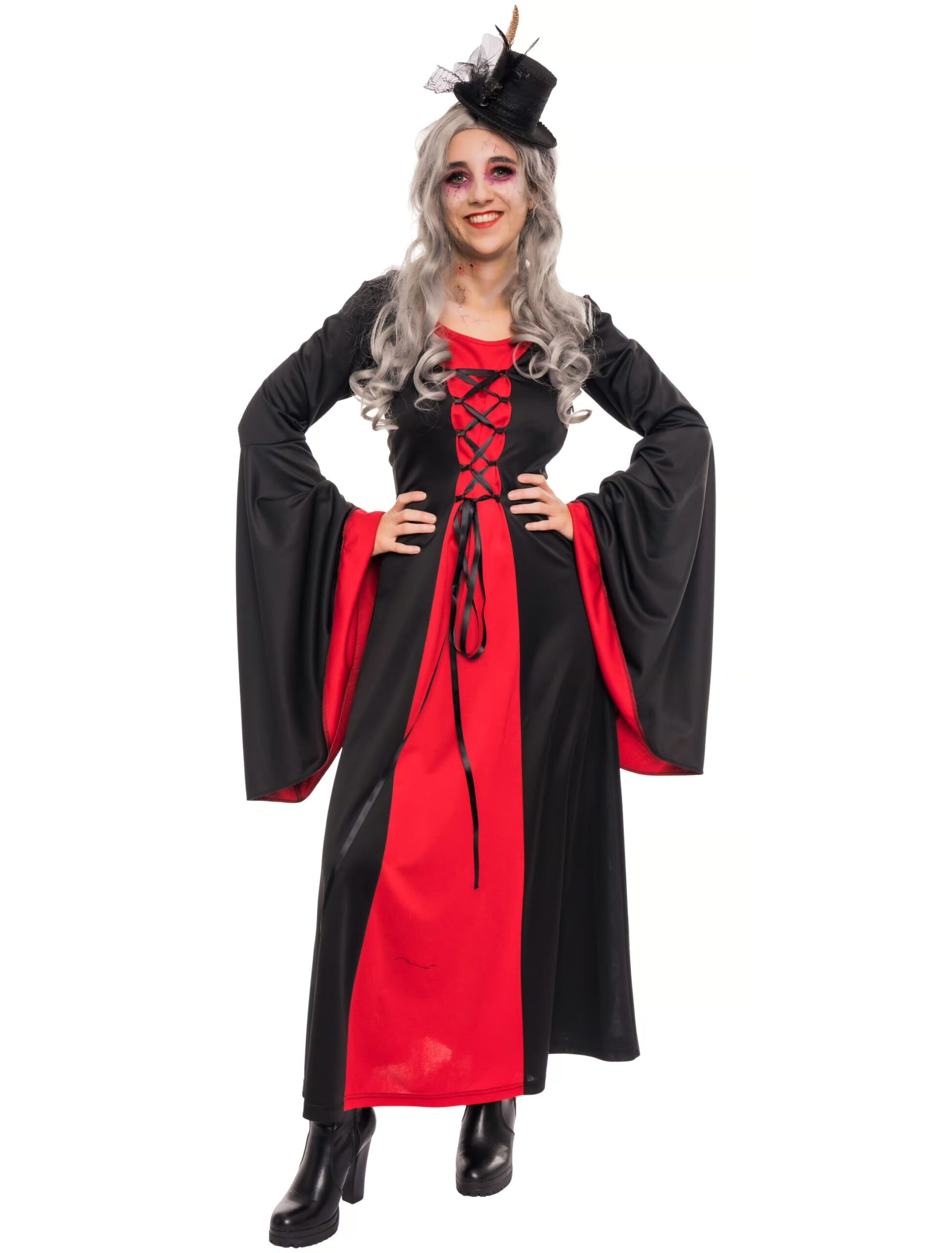 Kleid mit Kapuze Damen schwarz/rot 3XL, ideal für Karneval & Fasching