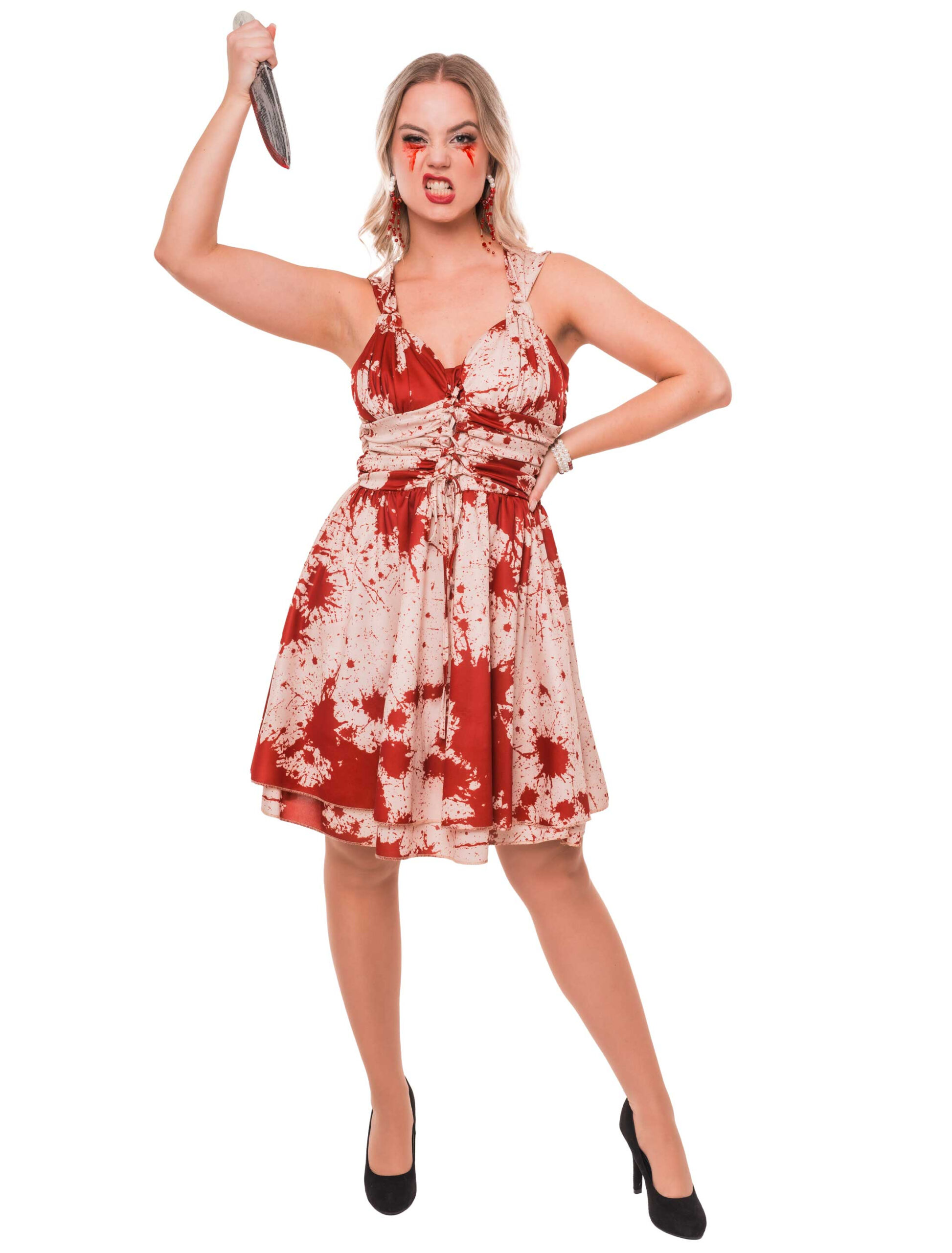 Gruselig gut und absolut partytauglich! Egal ob Zombie-Party, Halloween oder schauriger Mottotag, unser blutiges Kleid ist wie gemacht für deinen großen Auftritt im Horrormodus. Das auffällige blutige Muster sorgt für Gänsehaut Garantie und macht dich zur wandelnden Gruselgeschichte. Die Schnürung vorn bringt einen coolen Touch mit und sorgt dafür, dass dein Outfit sitzt wie angegossen. Und damit das Anziehen genauso einfach ist wie das Erschrecken deiner Mitmenschen, hat das Kleid einen praktischen Reißverschluss an der Seite. Reinschlüpfen, Schockerblick aufsetzen und ab zur Party!