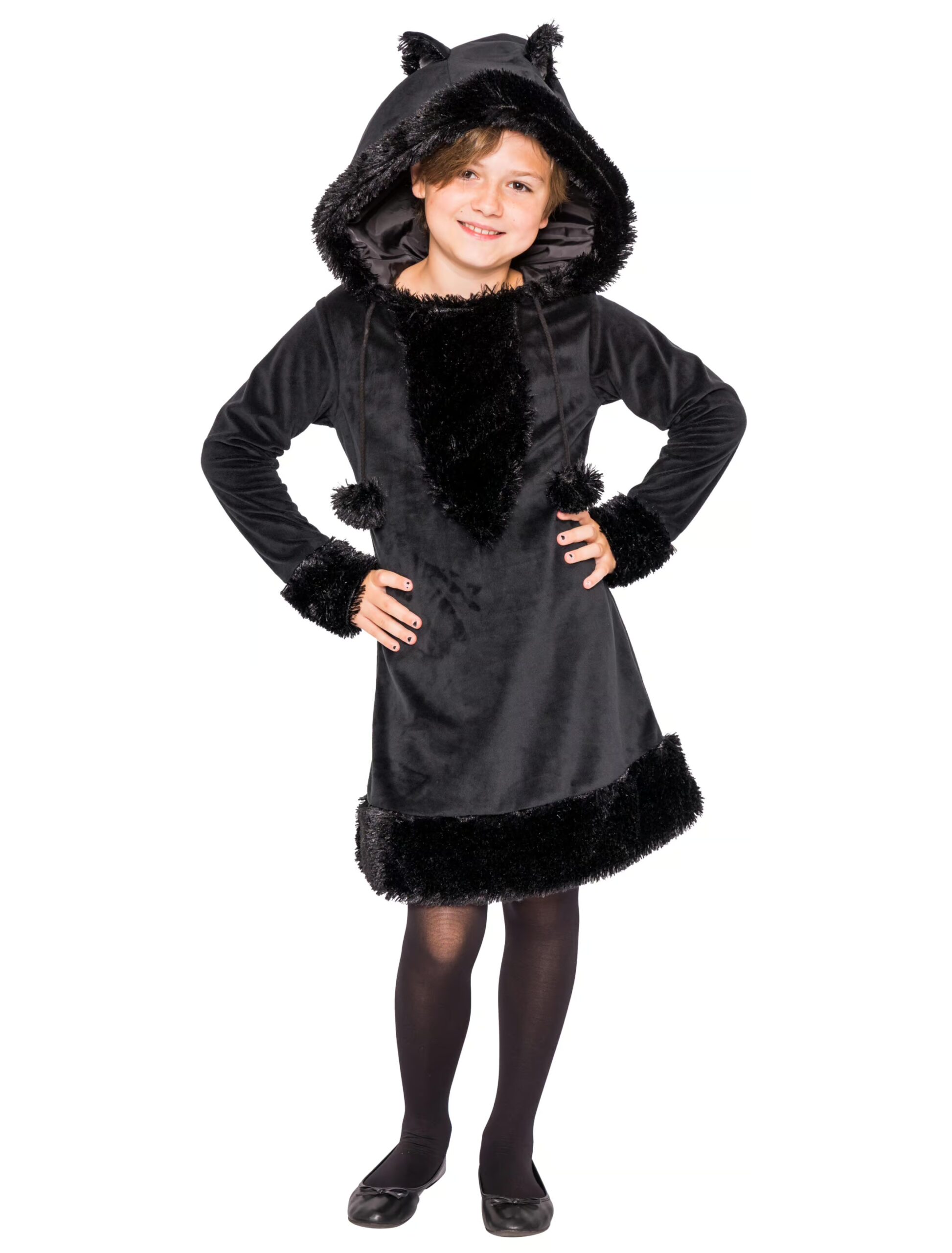 Wunderschön ist dieses bezaubernde, schwarze Katzenkostüm, das aus Deinem kleinen Liebling das süßeste Kätzchen der Welt macht. Ein hübsches Kätzchen, das jeder lieb haben muss. Das niedliche Katzenkostüm besteht aus einem kurzen, schwarzen Plüschkleidchen, das mit einer Kapuze samt entzückenden Katzenohren sowie Tunnelzug mit Bommeln ausgestattet ist. Der flauschige Katzenschwanz macht das anmutige Katzen Kinderkostüm komplett. Mit diesem charmanten Kostüm sieht Deine Kleine nicht nur wie ein liebenswürdiges Schmusekätzchen aus, das sicher in Mittelpunkt des Geschehens steht, sondern das auch zu jedem Kostümfest und zu Kindergeburtstagen viel Spaß haben wird.