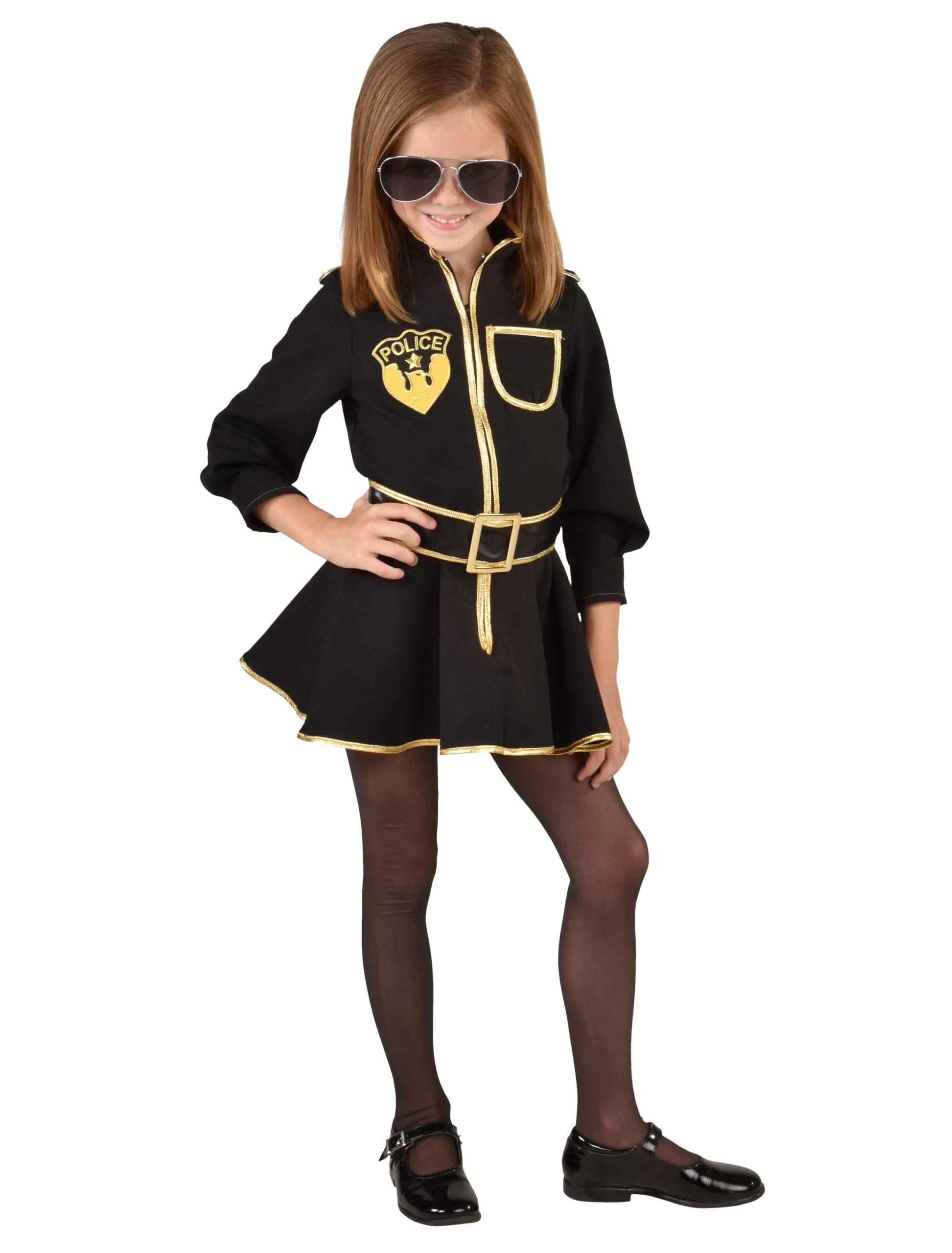 Vielleicht die kleinste, aber auch coolste Polizistin der Welt! Mit Deinem neuen Kinder Kostüm sorgst Du für Ordnung auf der kommenden Karnevals- oder Mottoparty! Das süße Kostüm für Mädchen besteht aus einem kurzen, schwarzen Kleidchen, das am Kleidsaum und in der Front mit auffälligen, goldfarbenen Nähten verziert ist. Der hübsche Gürtel mit den goldenen Details und das goldene Polizeiwappen auf der rechten Brust machen das Kostüm zu einem tollen Hingucker. In der Front kannst Du das Kleid bequem durch einen Reißverschluss öffnen und schließen. Deinen Coolness-Faktor erhöhst Du noch zusätzlich durch das Tragen einer Sonnenbrille! Exklusiv Artikel.