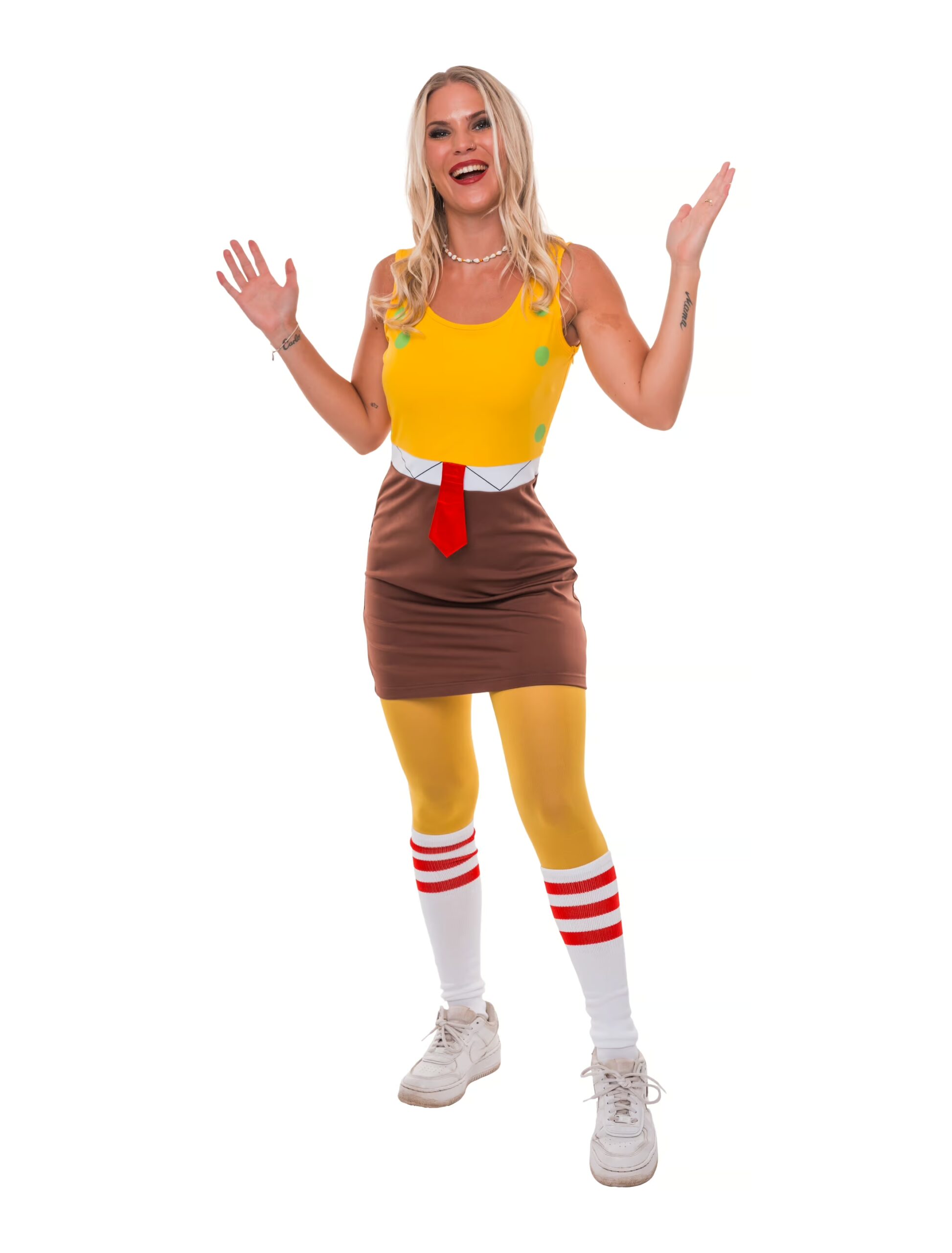 Unser Kleid Schwamm bringt jede Menge Spaß und Farbe in dein Kostüm. Das ärmellose Kleid ist vorne mit einer kleinen Krawatte dekoriert und erinnert im Design an den wohl bekanntesten Schwamm aus Film und Fernsehen. Durch die leuchtenden Farben und den verspielten Look wird es garantiert zum Hingucker auf jeder Feier. Ob Karneval, Mottoparty oder Junggesellenabschied – mit unserem Schwamm Kleid tauchst du stilvoll in die Party ein und sorgst für viele Lacher!