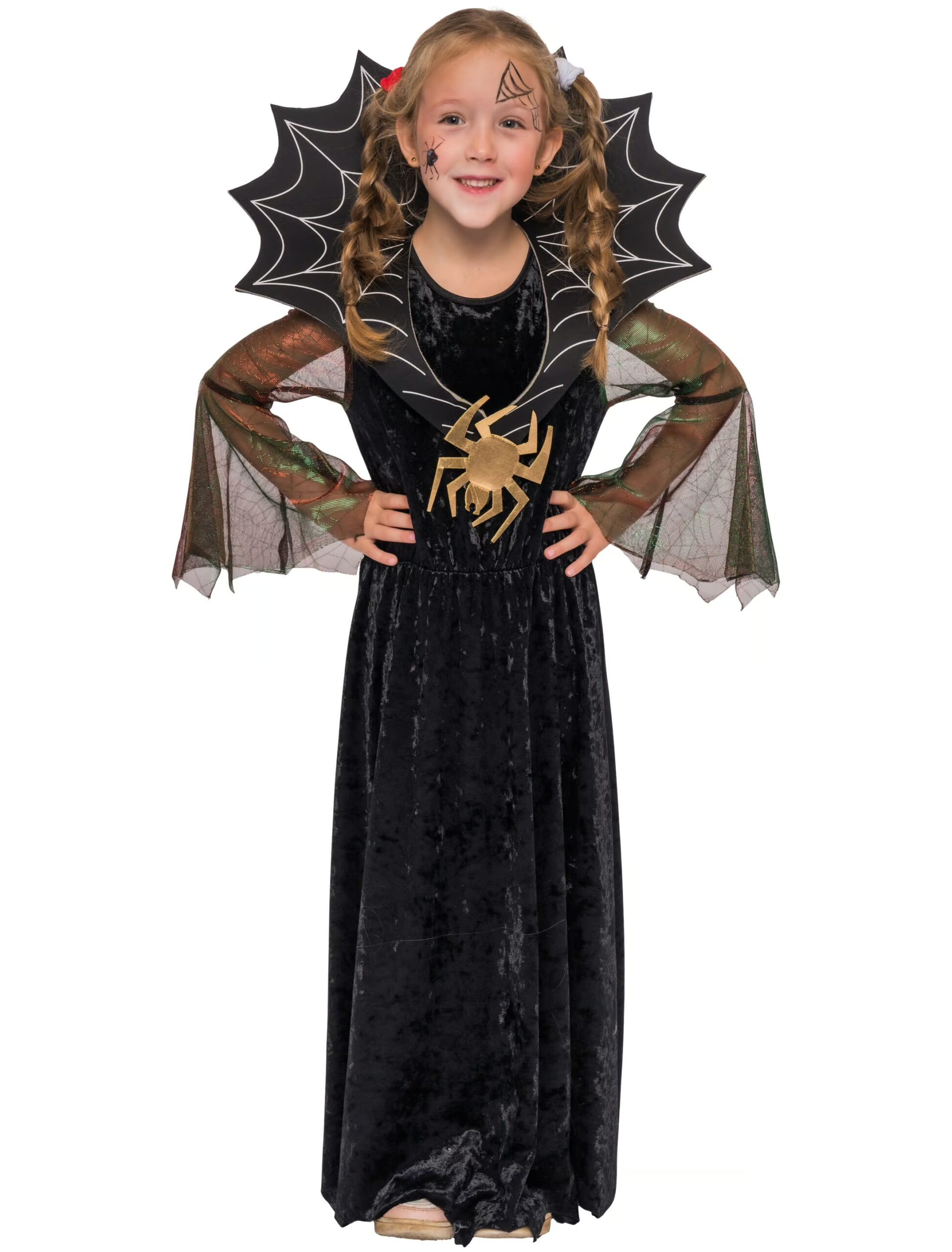 Kleid Spinnenhexe mit Stehkragen schwarz 116/128, ideal für Karneval & Fasching