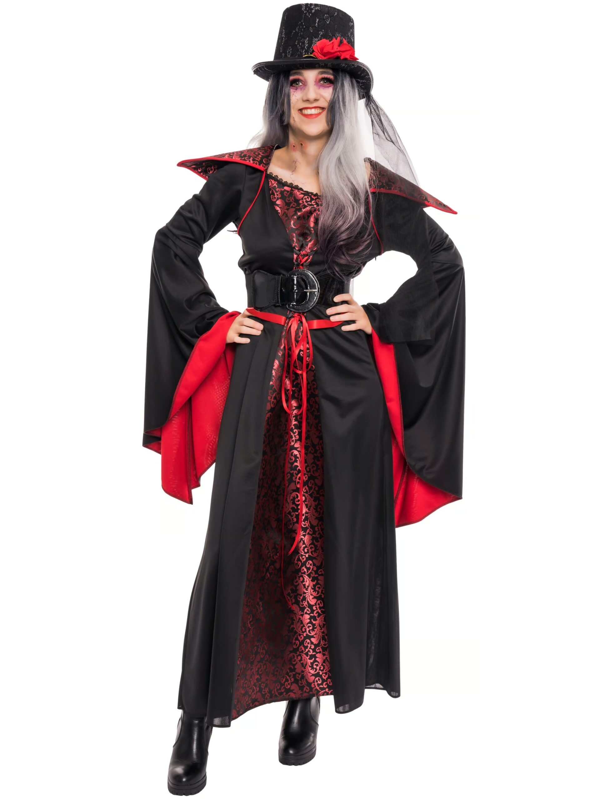 Kleid Vampir mit Kragen Damen schwarz/rot XL, ideal für Karneval & Fasching