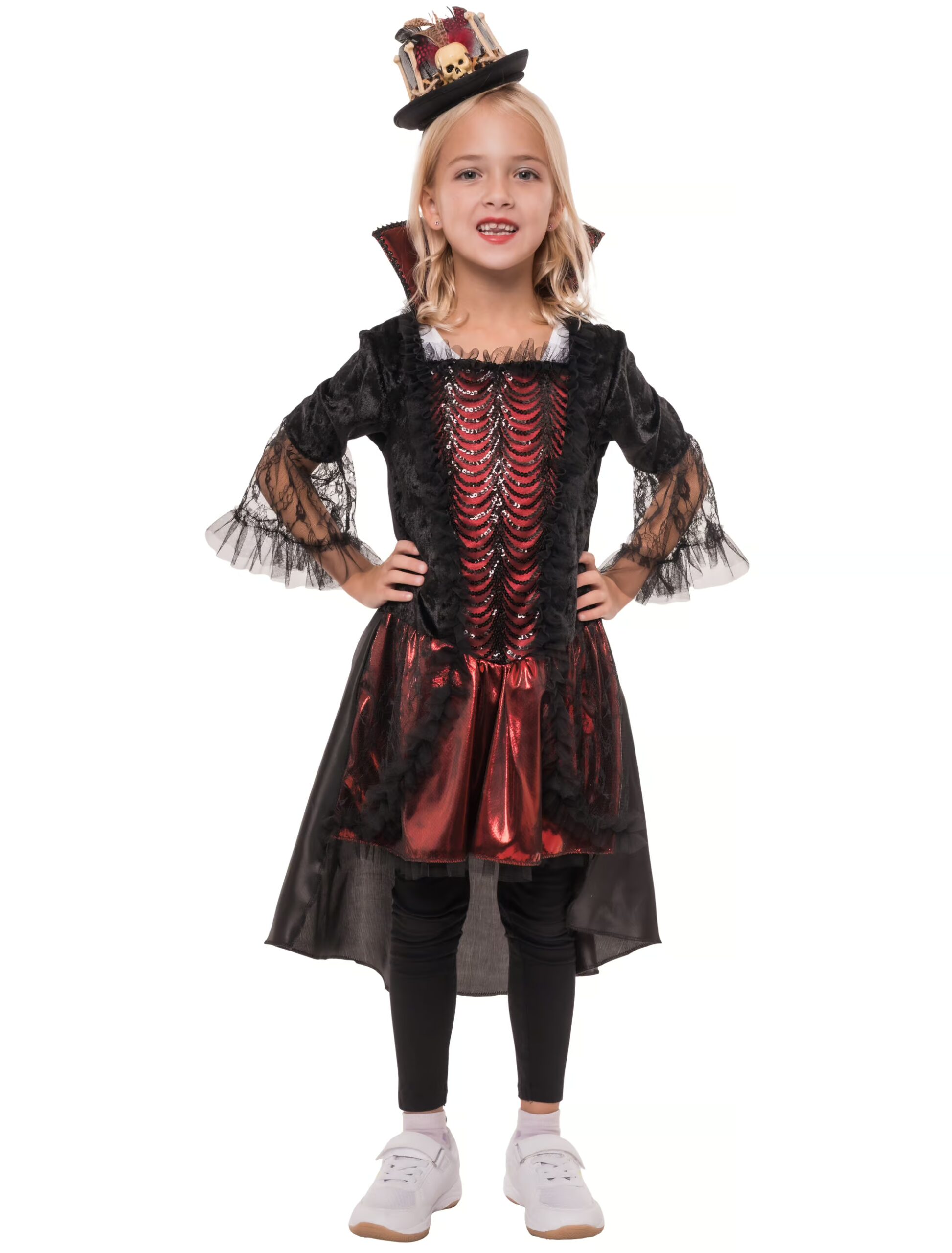 Unser Kleid verwandelt dich im Handumdrehen in eine elegante kleine Vampirin! Das Oberteil aus Samt mit glitzernden Pailletten, welche ein Skelett darstellen und kurzen Tüll-Ärmeln sorgt für einen schaurig-schönen Look. Der asymmetrische Rock, der hinten länger ist als vorne, macht das Outfit besonders raffiniert. Ideal für Halloween, Fasching oder jede gruselig-magische Verkleidungsparty!