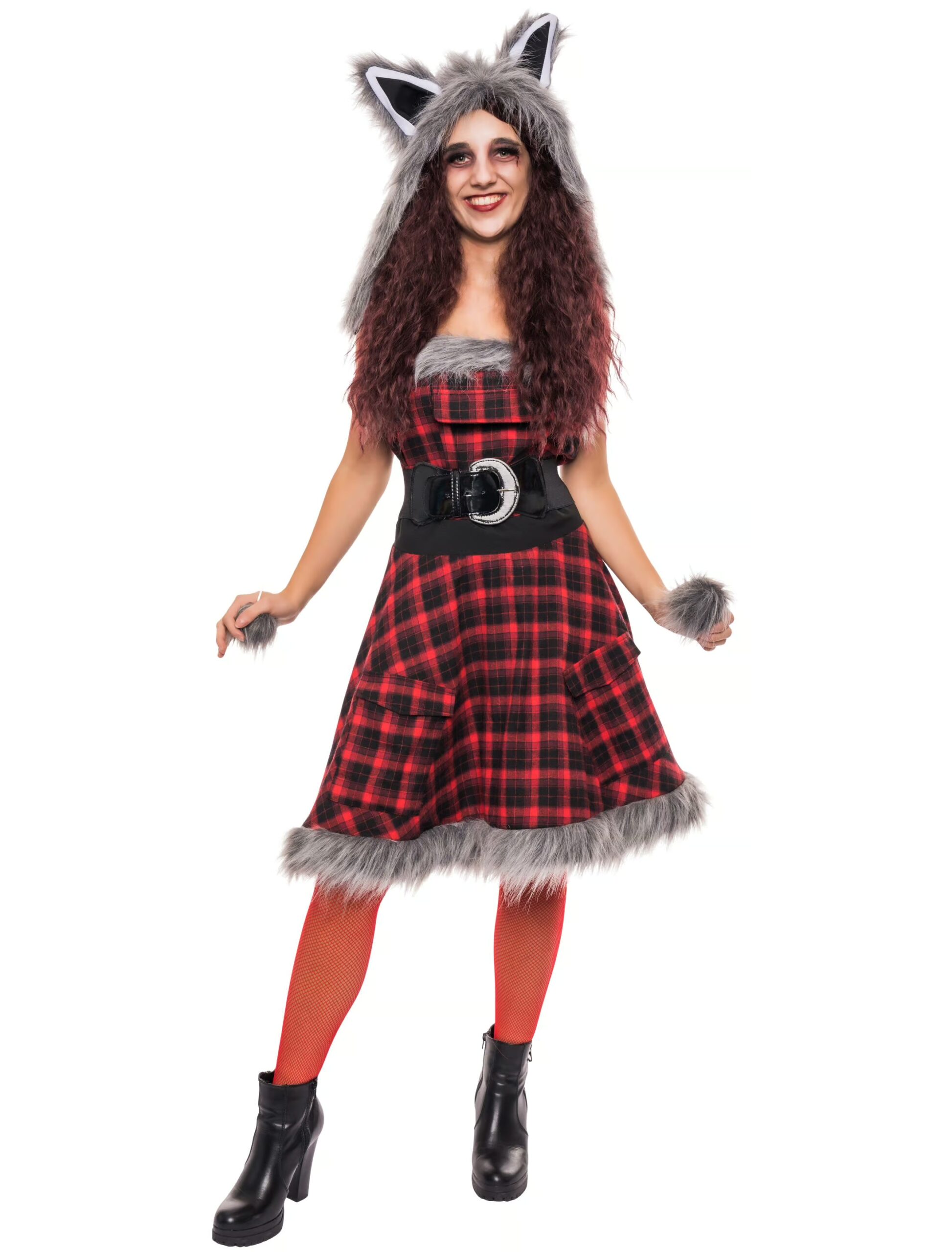 Kleid Wolf mit Kapuze Damen schwarz/rot M