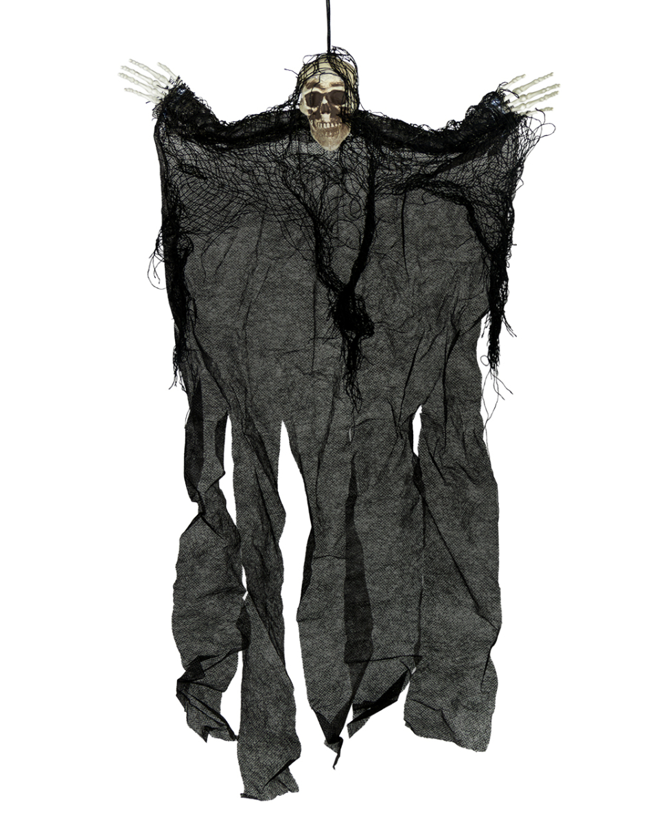 Kleines Fetzenskelett Hängefigur 55cm Halloween Fetzen-Reaper mit Knochenhänden Unser kleines Fetzenskelett als Hängefigur ist ein wahrhaft schauriger Hingucker! Hänge den Grim Reaper als Hängedekoration an Möbel, Türrahmen oder in den Eingangsbereich und lass ihn düsteres Flair verbreiten. Der Grim Reaper im Fetzenkleid ist ca. 55 cm groß. Die Figur zum Aufhängen besticht mit einem schaurigen Totenkopfgesicht und knöchernen Händen. Die Arme schauen unter dem Fetzengewand hervor und lassen sich biegen und positionieren. Lieferumfang: 1 x Kleines Fetzenskelett Hängefigur 55cm Farbe: Schwarz, Beige Größe: ca. 55 x 35 cm Material: Kunststoff, Polyester, Draht Gruseliger Grim Reaper zum Aufhängen Schauriger Sensenmann mit Fetzenkleid Geniale Grusel-Deko zum Schnäppchen-Preis Ohne Sound, Licht, Bewegung
