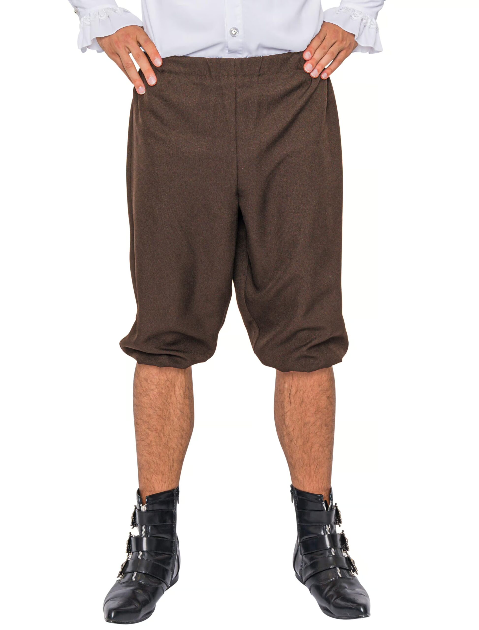 Zu einer Mottoparty mit Bezug zu Piraten ziehst Du die schlichte, braune Kniebundhose an. Sie ist mit einem Gummizug versehen und aus pflegeleichtem 100% Polyesterstoff. Du hast drei Größen zur Auswahl. In unserem Shop findest Du passend dazu, noch andere Kleidungsstücke und Accessoires. Wie wäre es mit einer reich verzierten Jacke? Anschließend präsentierst Du Dich als adeliger Herr. Die Hose kleidet auch Piraten auf Beutezug und Steampunk Gentlemen mit Zylinder.