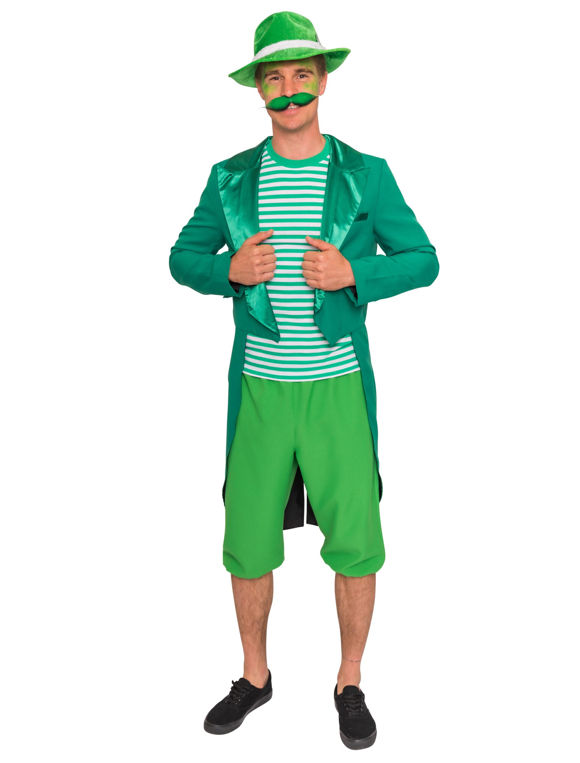 Mit dieser grünen Kniebundhose aus Polyester und passenden grünen Kostümteilen sowie Accessoires aus unserem Shop wirst Du Dich, einer irischen Sage nach, am St. Patrick’s Day oder auch schon zu Fasching in einen grünen irischen Kobold verwandeln. Dieser versteckt am Ende des Regenbogens Töpfe voller Gold und geht nur an diesem Tag unter Menschen. Natürlich kannst Du die St. Patrick’s Day Kniebundhose auch mit allen möglichen anseren Kostümteilen kombinieren und Deinen eigenen Kobold kreieren.
