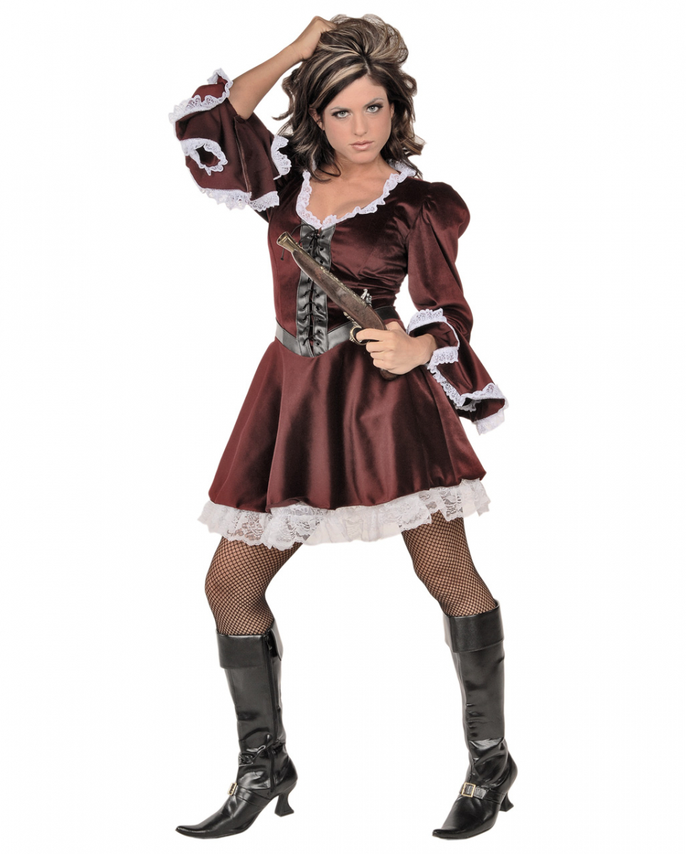 Korsaren Braut Premium Kostüm Gr. L Korsaren Braut Premium Kostüm, mit diesem sexy Piraten Minikleid bezwingt sie jeden Piraten, Freibeuter und Schatzjäger. Den Verführungskünsten der Kosaren Braut ist schon Sandokan und mancher starke Kerl erlegen, während sie sich heimlich sich mit der Beute aus dem Staub gemacht hat. Das Korsaren Braut Premium Kostüm aus bordeauxrotem Samtvelour hat an der Front einen Einsatz aus schwarzem Kunstleder, der geschnürt die Optik eines Mieders nachamt, sowie einen angedeuteten Gürtel aus dem selben Material. Der glockige Rock des Korsaren Braut Premium Kostüm wird von einem angenähtem Petticoat, dessen Saum mit weißer Spitze versehen ist in Form gehalten. An den ausgestellten, weiten Manschetten der Ärmel sowie am Dekollete befinden sich ebenfalls weiße Spitzen. Piraten Pistole Echtholz nicht inkl. Farbe: Braun/Weiß Größe: L 40/42 Material: 100% Polyester