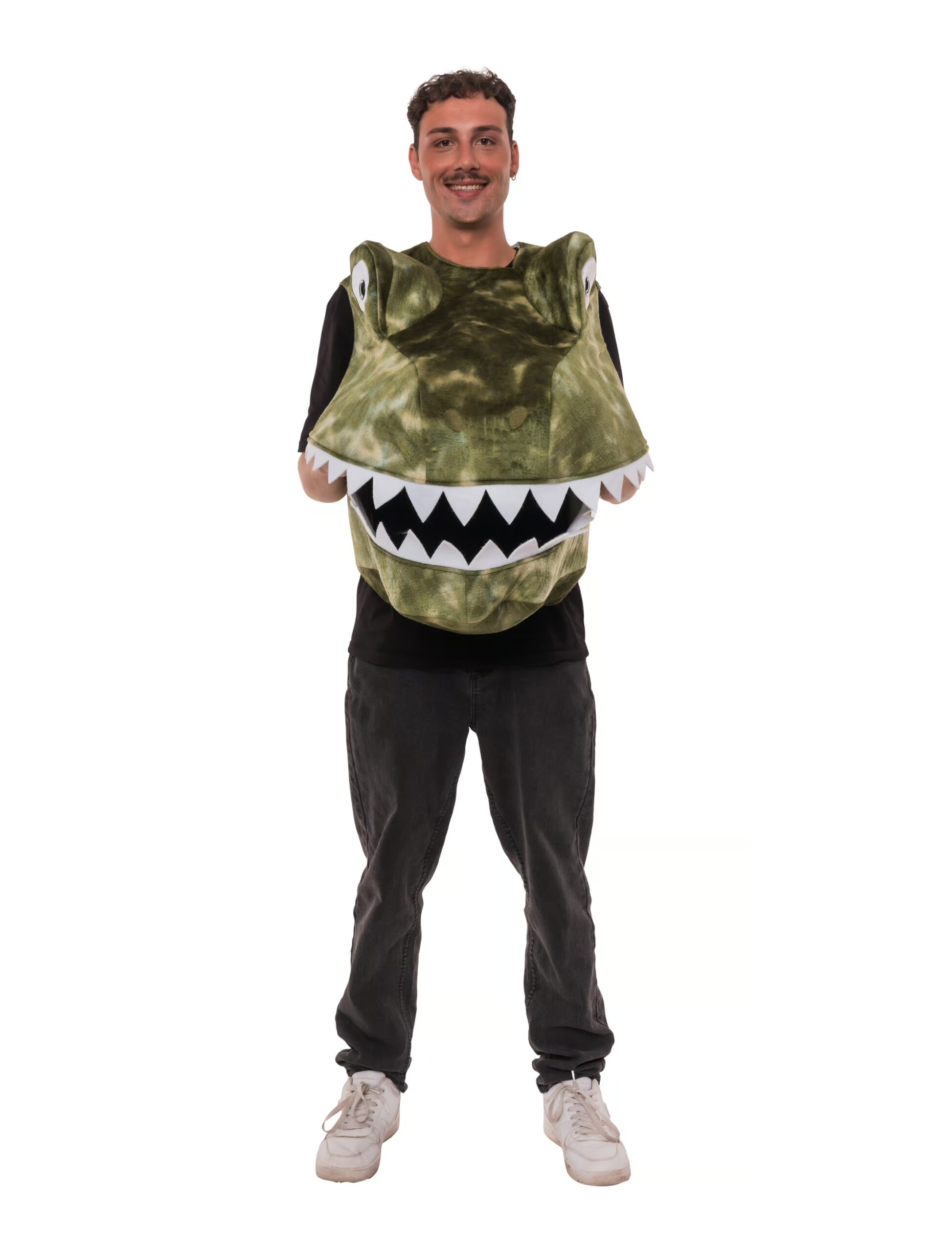 Unser Krokodil Kostüm für Erwachsene sorgt garantiert für Aufsehen – ob auf der nächsten Karnevalsfeier, Motto-Party oder einfach als witziger Hingucker. Du ziehst es bequem über den Kopf, deine Arme schauen seitlich heraus und vor deinem Bauch ragt ein dreidimensionales Krokodilmaul, das du auf- und zuklappen kannst. Dank Klettverschluss am Rücken ist das An- und Ausziehen kinderleicht, auch mitten im Trubel. Die großen, markanten Augen setzen dem tierischen Auftritt die Krone auf.