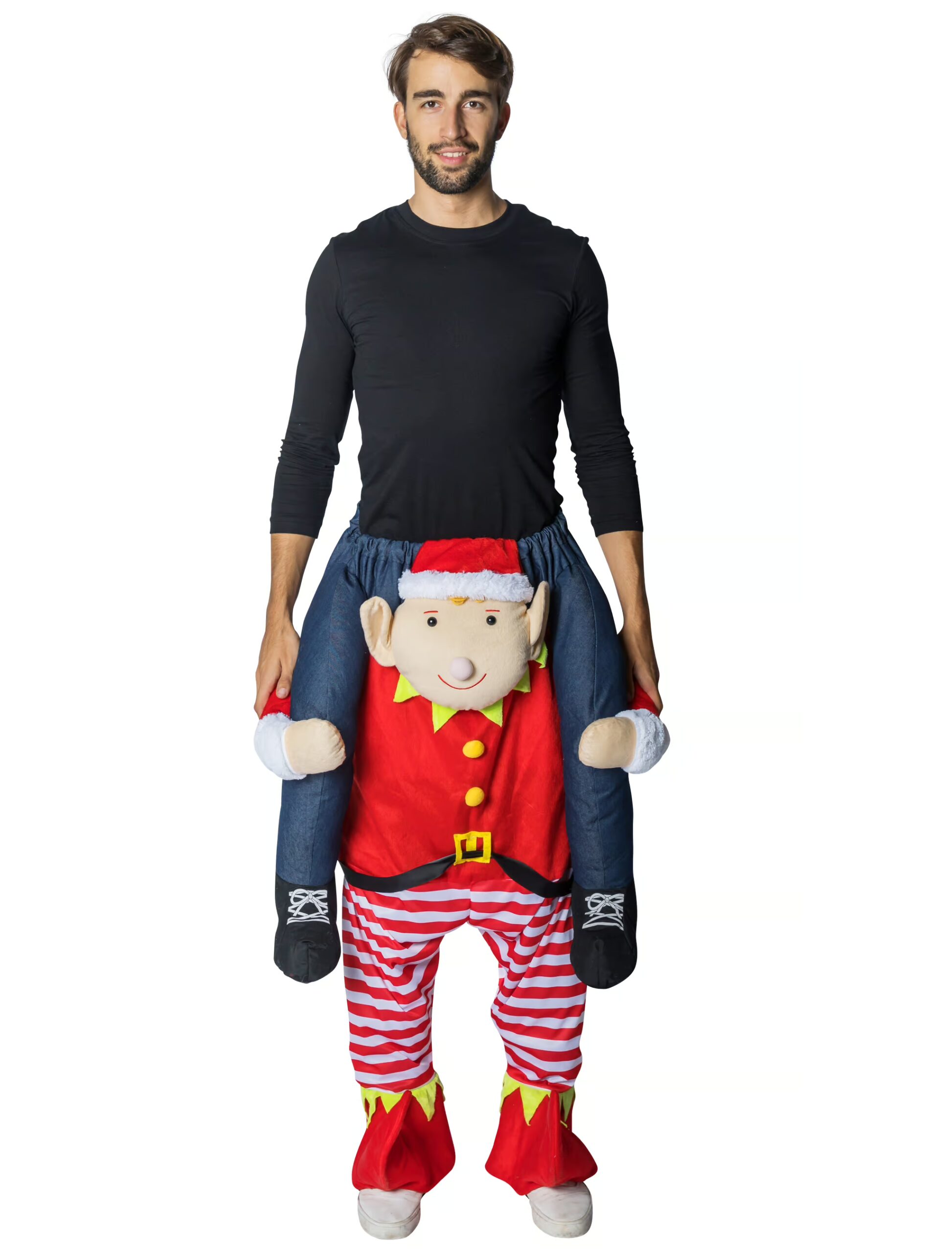 Ein besonders weihnachtliches Outfit bekommst Du mit dem Huckepack Wichtel Kostüm aus unserem Shop. Lass Dich einfach von dem kleinen Helfer des Weihnachtsmanns über die Party Area tragen und begib Dich auf die Suche nach der passenden Schneekönigin. Ein Gummizug sowie Schnüren sind im Hosenbund des Wichtel Kostüms eingearbeitet, so dass es fest beim Gehen und Stehen am Körper sitzt. In einer einheitlichen Größe kannst Du das Outfit nicht nur für weihnachtliches Partys kaufen, auch bei einem Junggesellenabschied ist das Kostüm ein echter Kracher, bevor es später zum Traualtar geht. An dem Kostüm sind Schuhgamaschen vernäht.