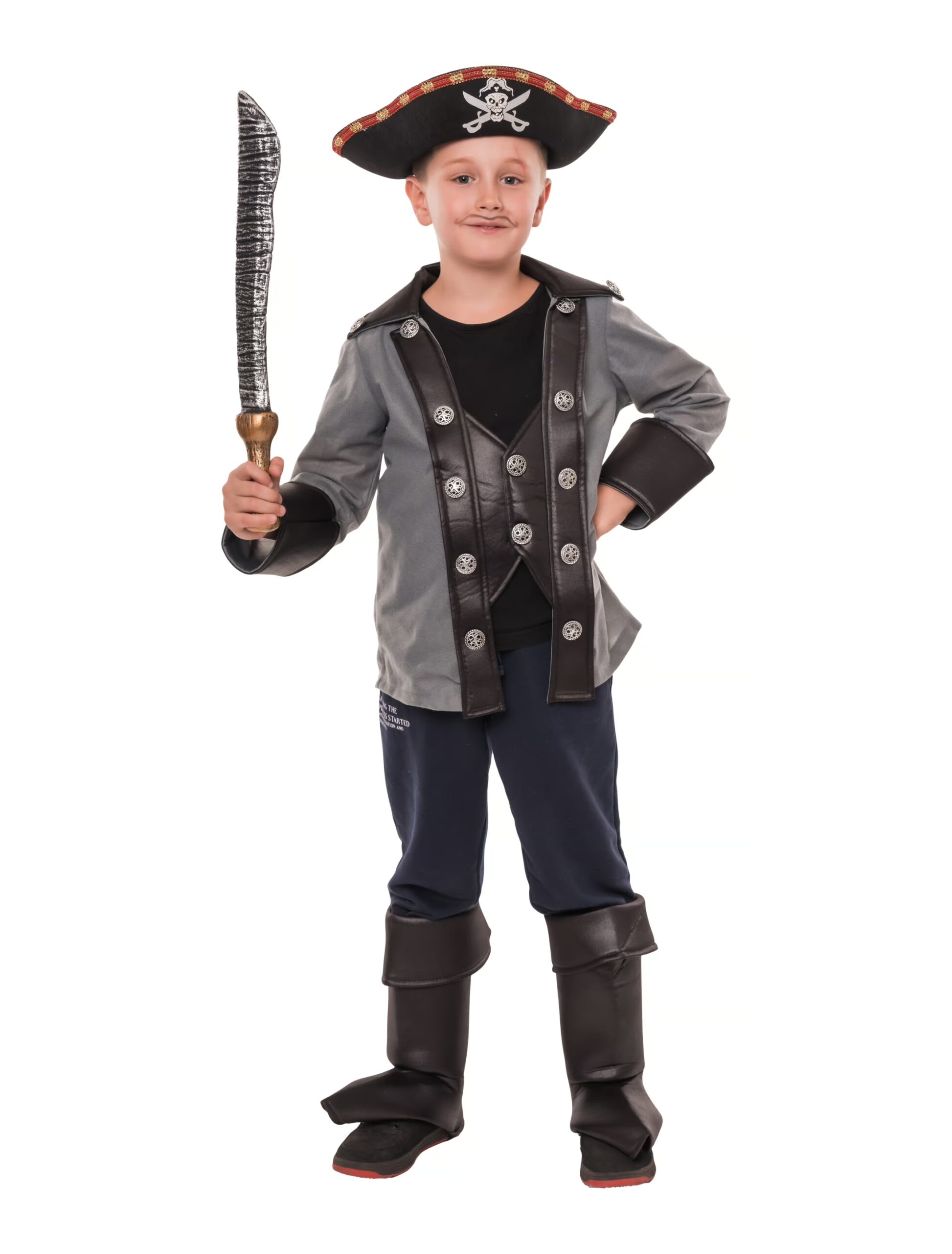 Bereit für das nächste große Abenteuer auf hoher See! Unser zweiteiliges Piratenkostüm für Kinder besteht aus einem detailreichen Shirt und farblich abgestimmten Stiefelstulpen. Das Shirt ist im klassischen Piratenstil gehalten und mit mehreren kunstvollen Knöpfen verziert, die dem Outfit eine authentische Optik verleihen. Es lässt sich vorne mit mehreren Klettverschlüssen schließen, was ein einfaches An- und Ausziehen ermöglicht. Die dazugehörigen Stiefelstulpen runden das Kostüm perfekt ab und sorgen für den typischen Piraten-Look. Ideal für Karneval, Mottopartys oder fantasievolle Kindergeburtstage – mit diesem Outfit wird jedes Kind zum mutigen Freibeuter!