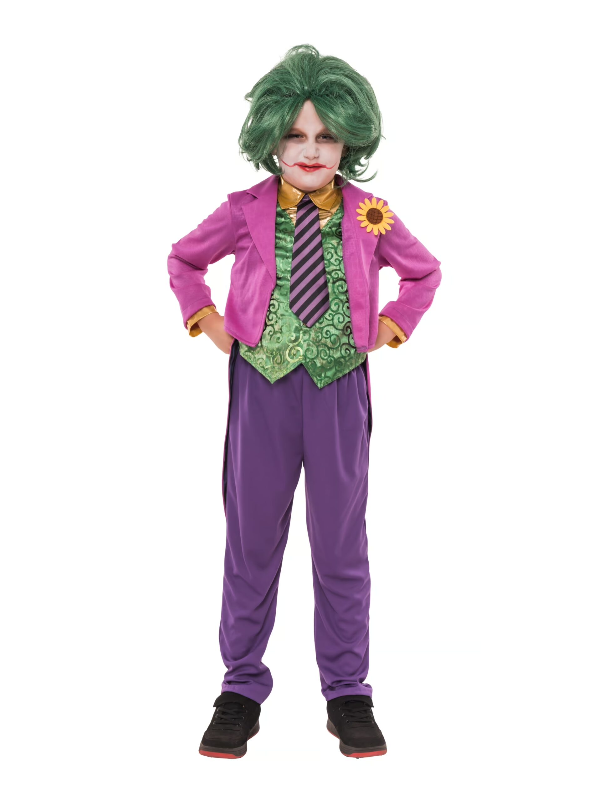 Unser auffälliges Kostüm besteht aus einer Jacke mit angenähter Weste, einer Hose und einer passenden Krawatte – alles farblich perfekt aufeinander abgestimmt. Die Jacke ist mit einer kunstvollen Stoffblume auf der Brust verziert und lässt sich vorne mit mehreren Klettverschlüssen einfach schließen. Die Krawatte wird im Nacken ebenfalls per Klettverschluss befestigt. Die Hose sitzt dank elastischem Bund bequem und passt sich gut an. Ein ideales Kostüm für kleine Schurken, die beim Karneval, auf Mottopartys oder beim Verkleiden zu Hause im Mittelpunkt stehen möchten!