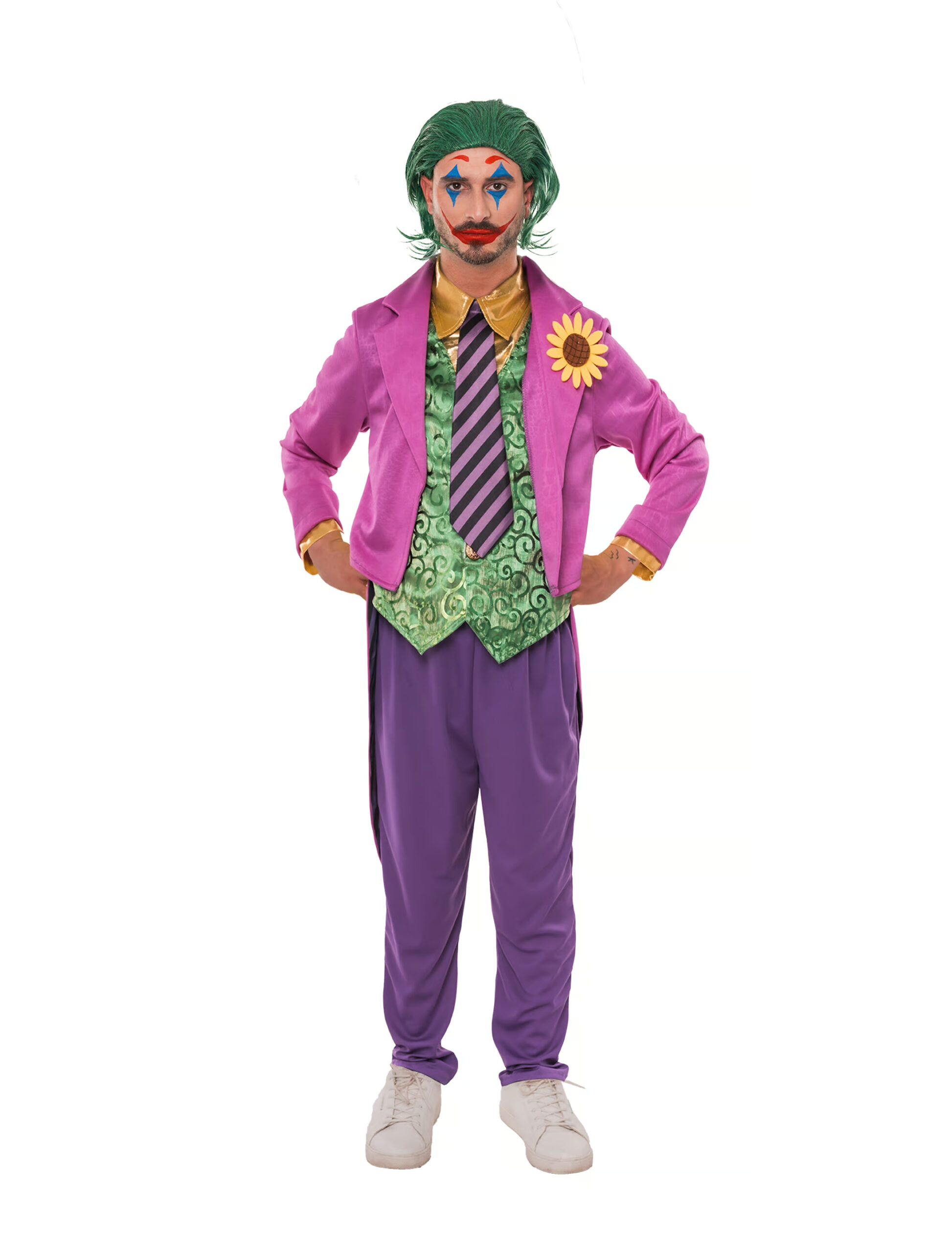 Unser auffälliges Kostüm-Set besteht aus einer Jacke mit angenähter Weste, einer Hose und einer passenden Krawatte. Die Jacke ist auf der Brust mit einer dekorativen Stoffblume geschmückt und wird vorne mit mehreren Klettverschlüssen geschlossen. Die farblich abgestimmte Krawatte lässt sich bequem mit einem Klettverschluss im Nacken befestigen. Die Hose besitzt einen elastischen Bund für optimalen Tragekomfort. Ein ideales Outfit für Karneval, Mottopartys oder als auffälliges Kostüm bei besonderen Events!