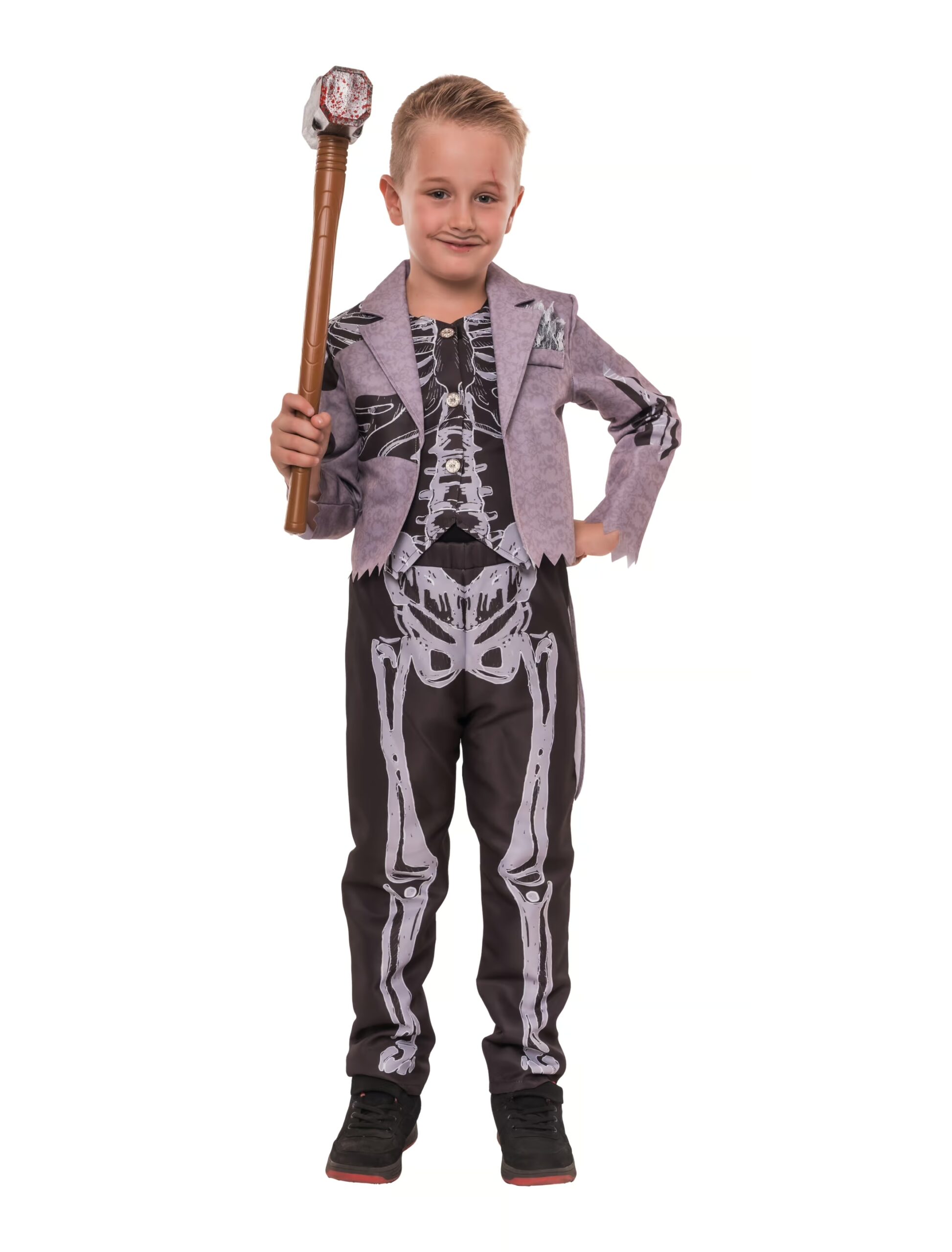 Unser zweiteiliges Skelett Kostüm besteht aus einer auffälligen Jacke und einer passenden Hose. Die Jacke lässt sich vorne bequem mit Klettverschlüssen schließen und zeigt an mehreren Stellen ein Knochen-Design, das für den nötigen Gruselfaktor sorgt. Die Hose ist schlicht gehalten, besitzt aber einen auffälligen Skelett-Aufdruck auf beiden Seiten und bietet durch den elastischen Bund einen angenehmen Sitz. Ideal für Halloween, Karneval oder Motto-Partys!