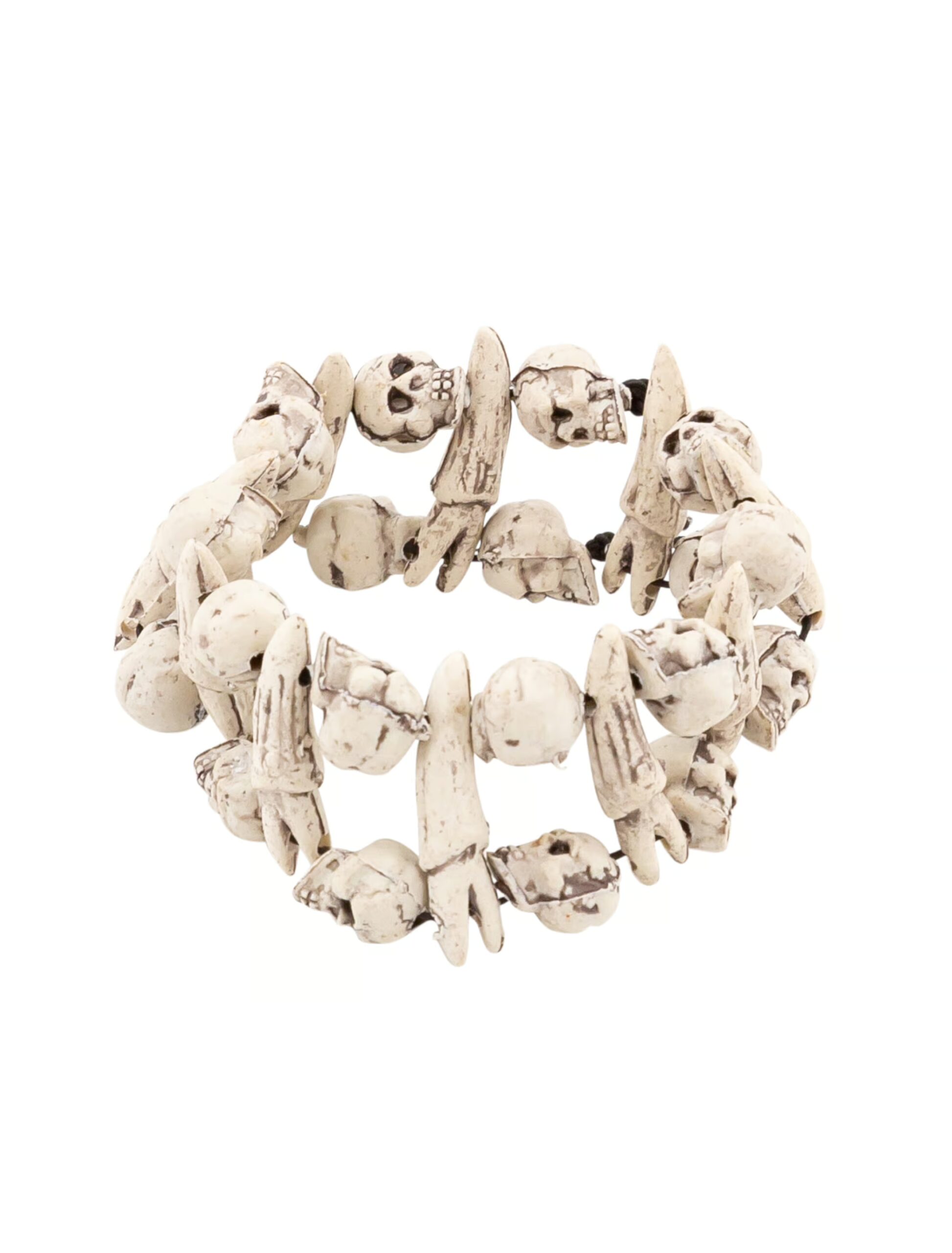 Kostümzubehör Armband Zähne und Schädel Farbe: weiß