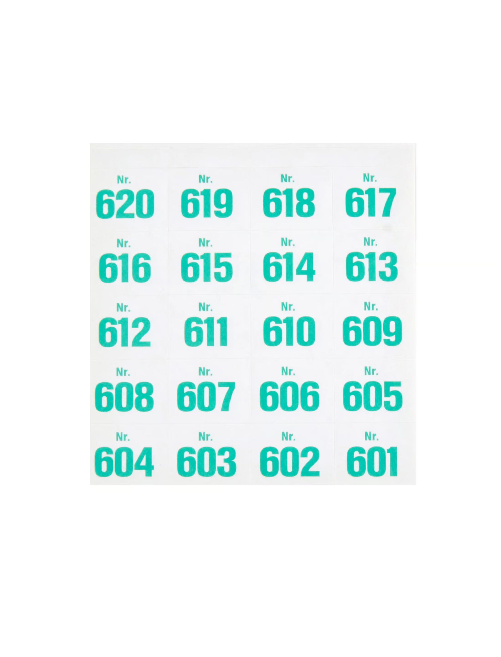 Ein Block mit 100 Klebenummern in Grün fortlaufend nummeriert von Nummer 601 bis zur Nummer 700. Einfache Handhabung und Übersicht: Die Klebenummern sind sauber als Block gebunden, fortlaufend nummeriert geordnet. So sind die Preise bei einer Tombola schnell und sauber mit Gewinn-Aufklebenummern gekennzeichnet und können leicht den Gewinnern zugeordnet werden. Die Etiketten lassen sich durch den besonderen Spezialkleber wieder leicht und rückstandsfrei von den Gewinnen entfernen.