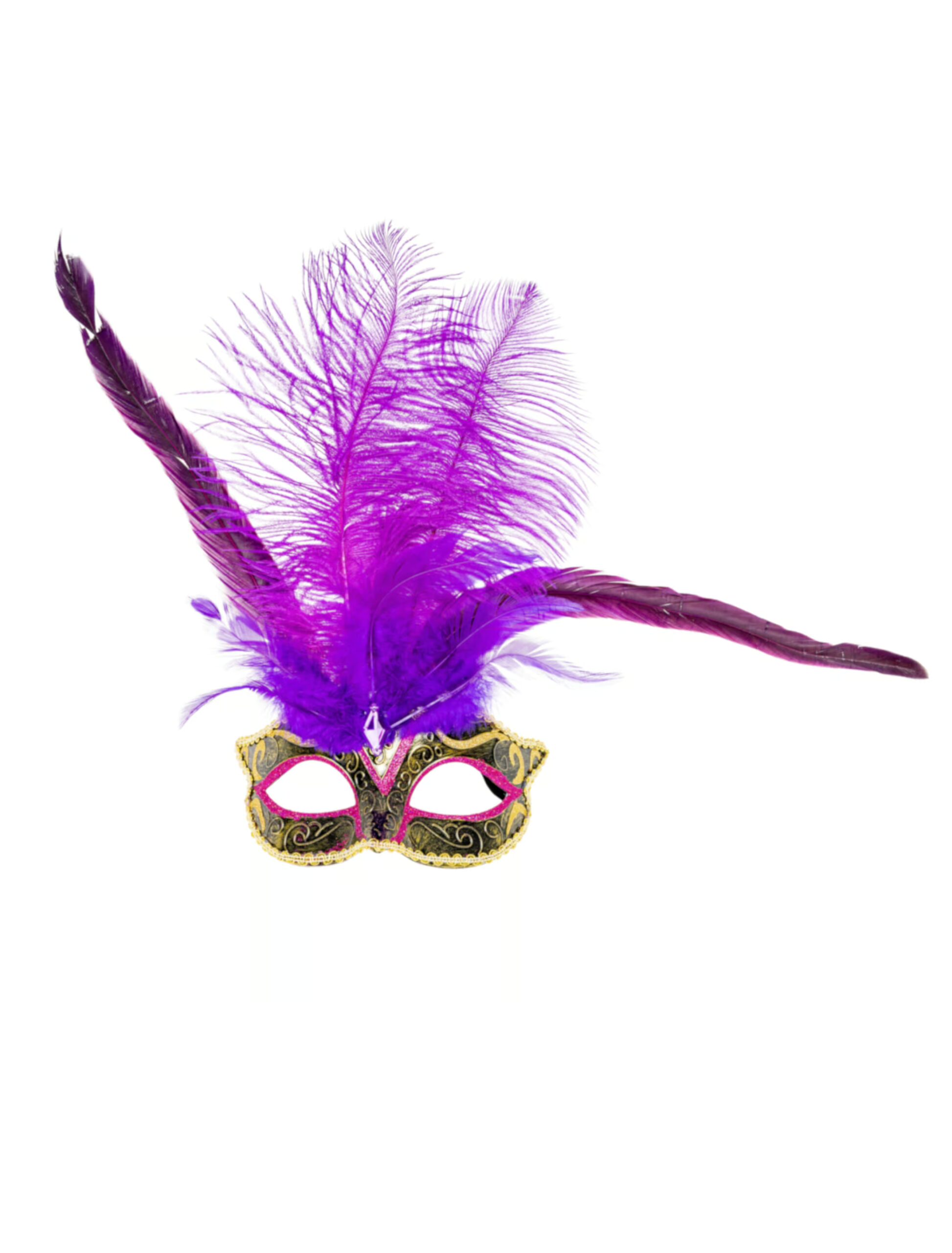 Diese wunderschöne Augenmaske ist das Sahnehäubchen für alle Maskenbälle und venezianischen oder barocken Kostümfeste. Die bunten Straußenfedern bilden eine tolle Verlängerung zur Verkleidung und ziehen magisch alle Blicke an. Ein harmonisches Farbenspiel umhüllt das goldene Glämmer der Maske. Die Maske besteht aus Plastik und ist mit einem Gummiband ausgestattet, was ein problemloses Tragen ermöglicht.