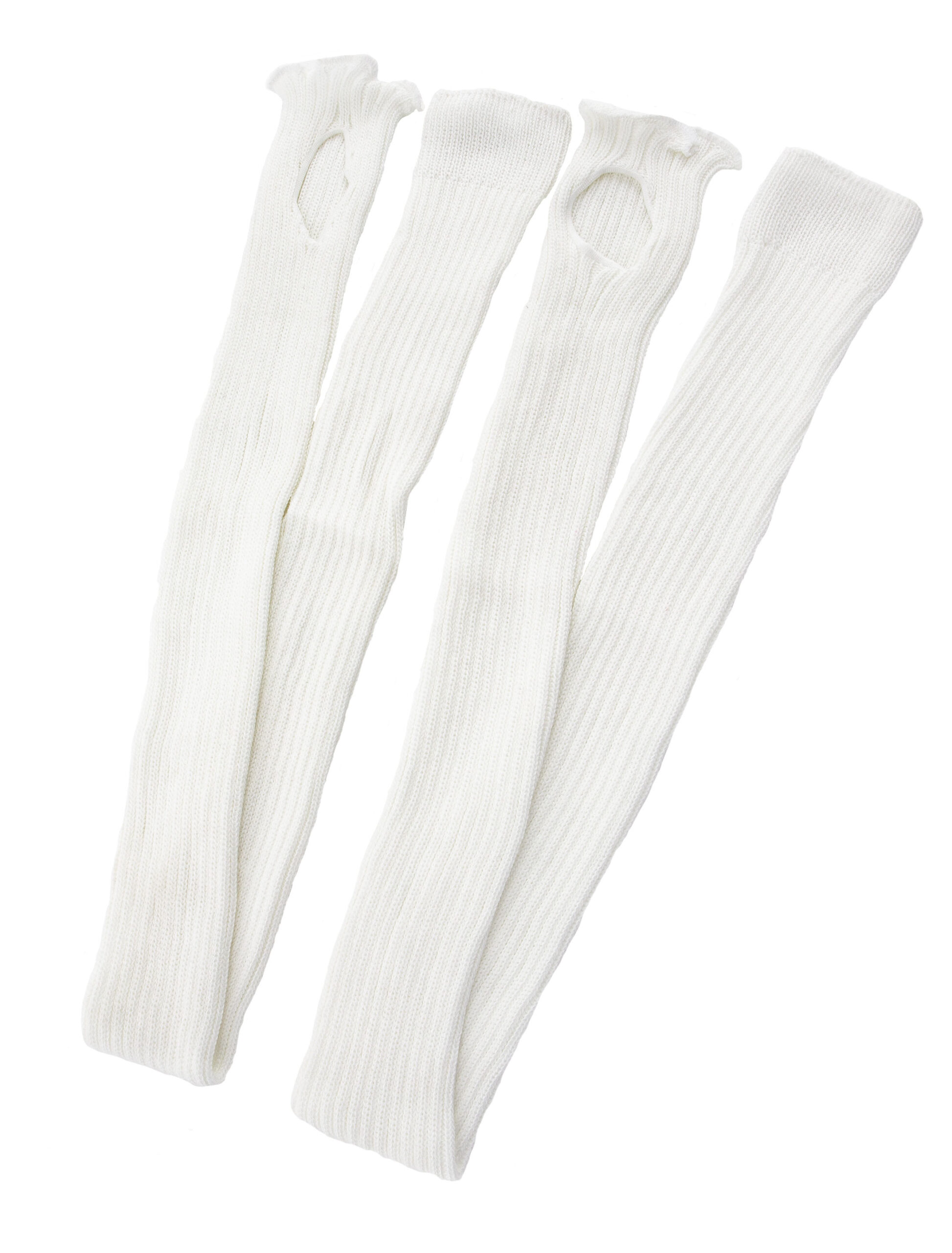Diese extra langen, weißen Ballettstulpen aus elastischem Polyacryl-Polyester-Gemisch in feinem Rippstrick und mit dem, unter dem Fußbogen verlaufenden Steg sind nicht nur funktionale Kleidungsstücke für Balletttänzer, sondern auch ein super KostümZubehör für alle Faschingsbegeisterten, die zum Rosenmontagsumzug oder Straßenfasching lange durchhalten wollen. Die bis übers Knie reichenden Stulpen kannst Du mit vielen Kostümteilen aus unserem Shop kreativ kombinieren oder Du trägst sie einfach unter Deinem Kostüm.