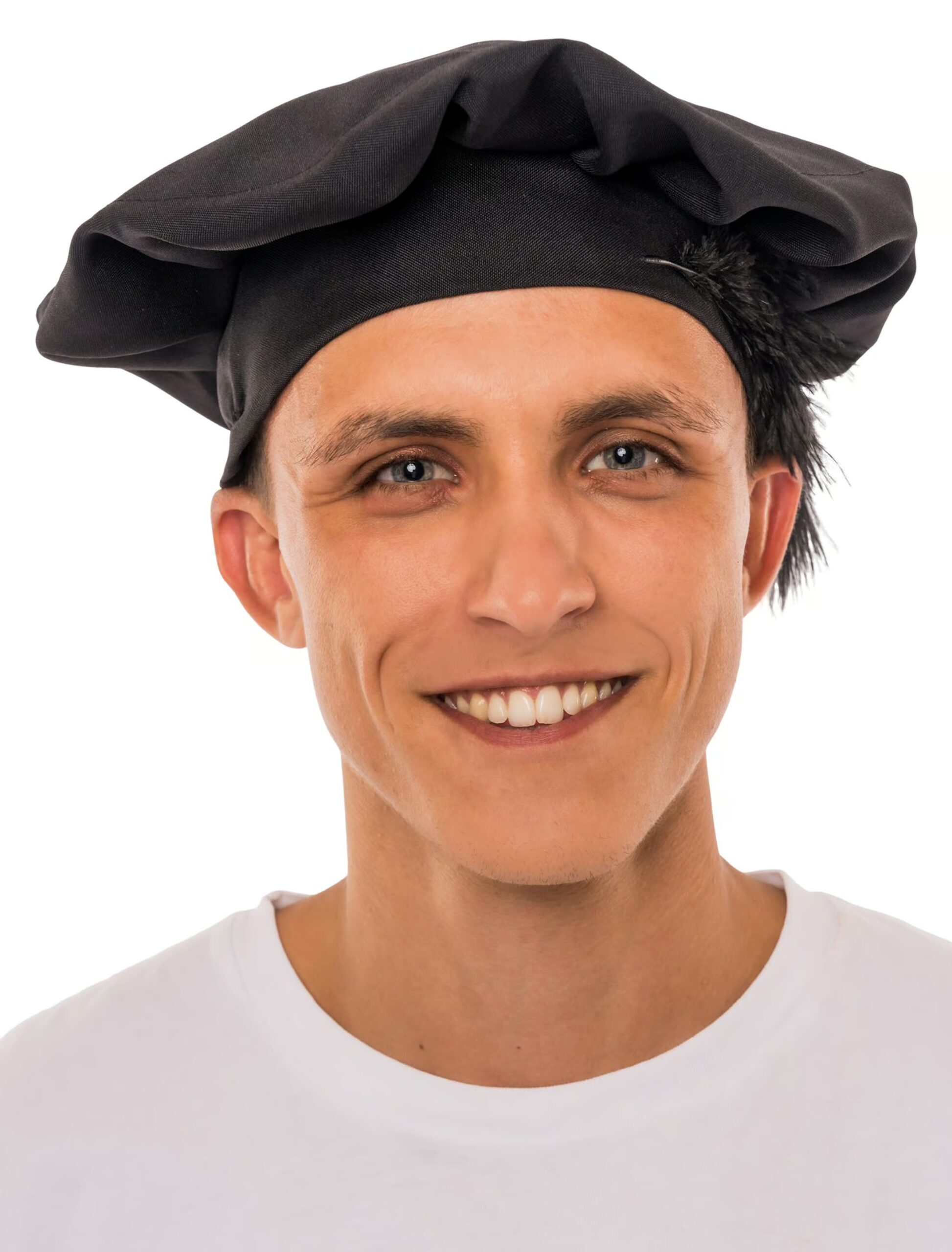 Barett mit Feder Herren schwarz one size, ideal für Karneval & Fasching