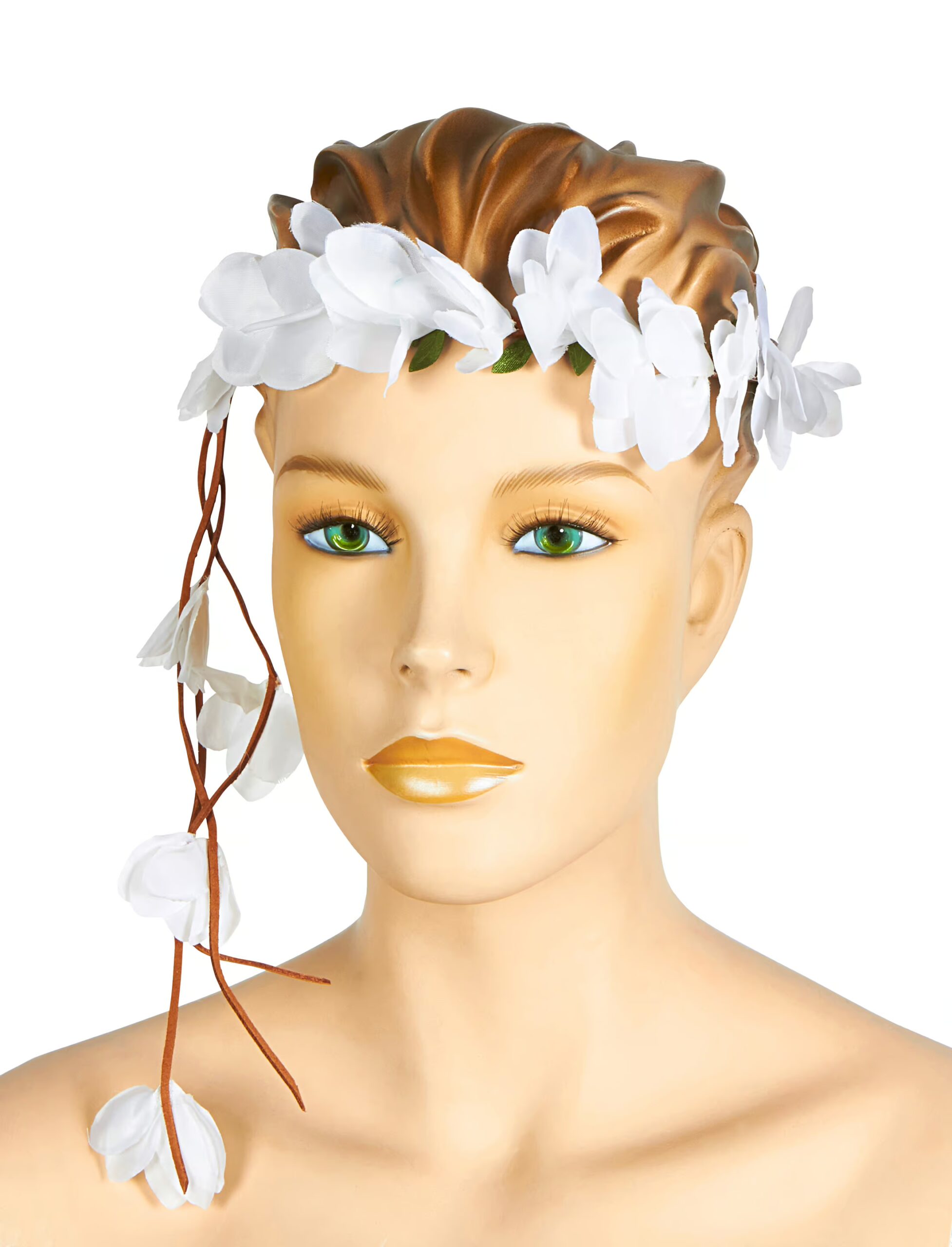 Dieser herrliche Blumenhaarkranz ist eine tolle Ergänzung für Dein Flower-Power-Outfit! Die weißen Blüten aus Polyester sind an einem Band befestigt und sorgen für einen natürlichen Look. Ob als Hippie, Blumenmädchen oder Elfenkriegerin verkleidet – dieser Kopfschmuck geht immer!
