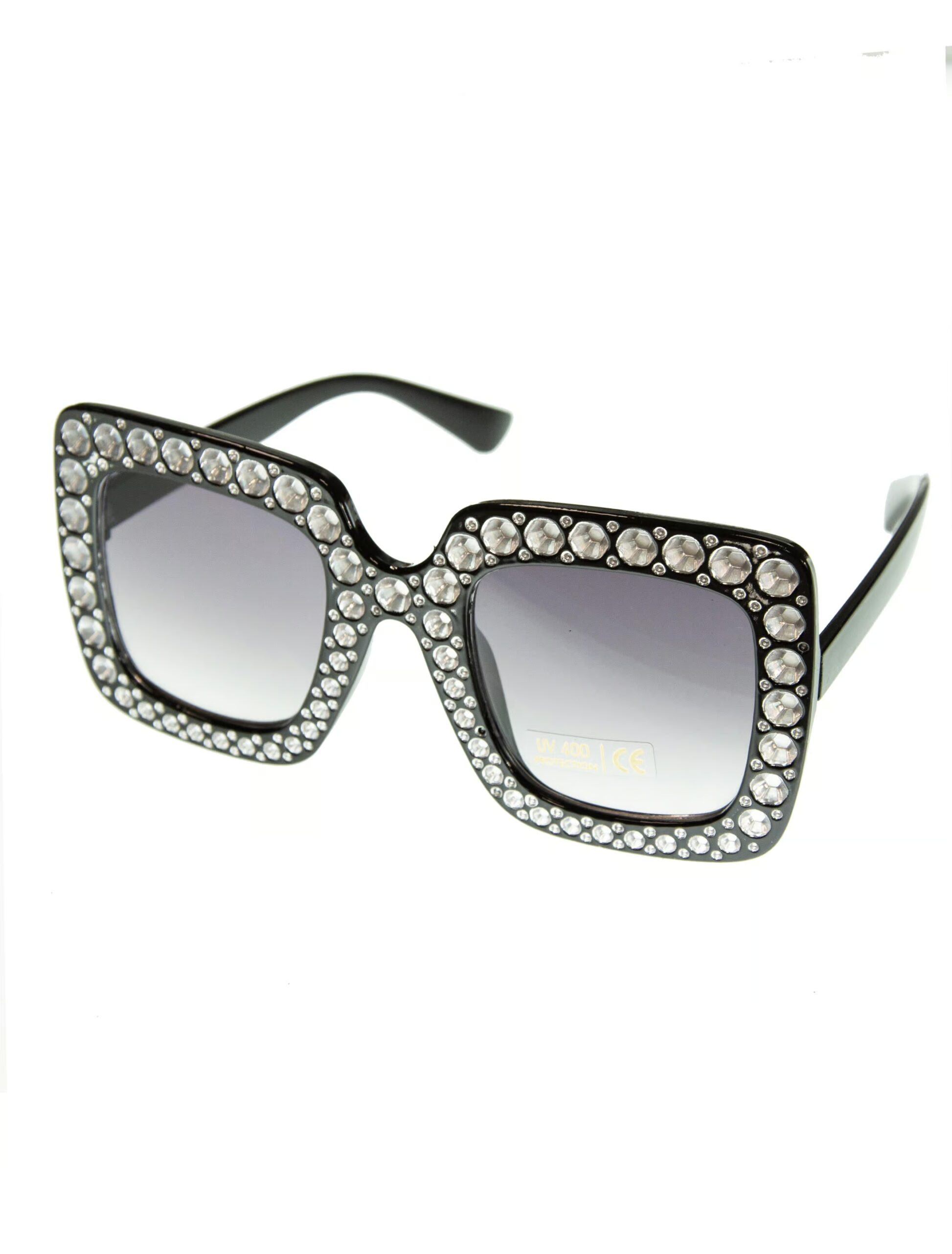 Bei dem Produkt handelt es sich um eine eckige Brille. Sie besteht aus Kunststoff und hat eine Breite von 14 cm. Auf den schwarzen Brillenrändern sind kleine, diamantenähnliche Steine eingesetzt, wodurch eine Diamanten-Optik entsteht. Durch diese Verzierung ist die Brille ideal für ein extravagantes Kostüm geeignet. Diese stylische Brille ist ein Muss für Dein Karnevals Outfit.