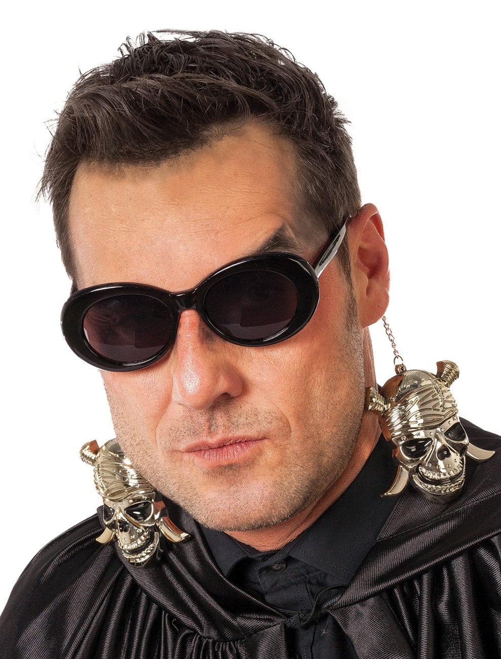 Diese Brille kombiniert schlichte Zurückhaltung mit einem außergewöhnlichen Detail: Zwei große Totenköpfe hängen als Ohrringe an den Enden der Brillenbügel und baumeln hinter den Ohren. Die klare, unauffällige Form der Brille wird dadurch zum perfekten Kontrast für das düstere Extra. Bei jeder Bewegung schwingen die Schädel mit und verleihen deinem Look eine stilvolle Portion Grusel. Ideal für Halloween, düstere Themenpartys oder für alle, die gerne einen Hauch von schwarzem Humor in ihr Outfit einbauen!