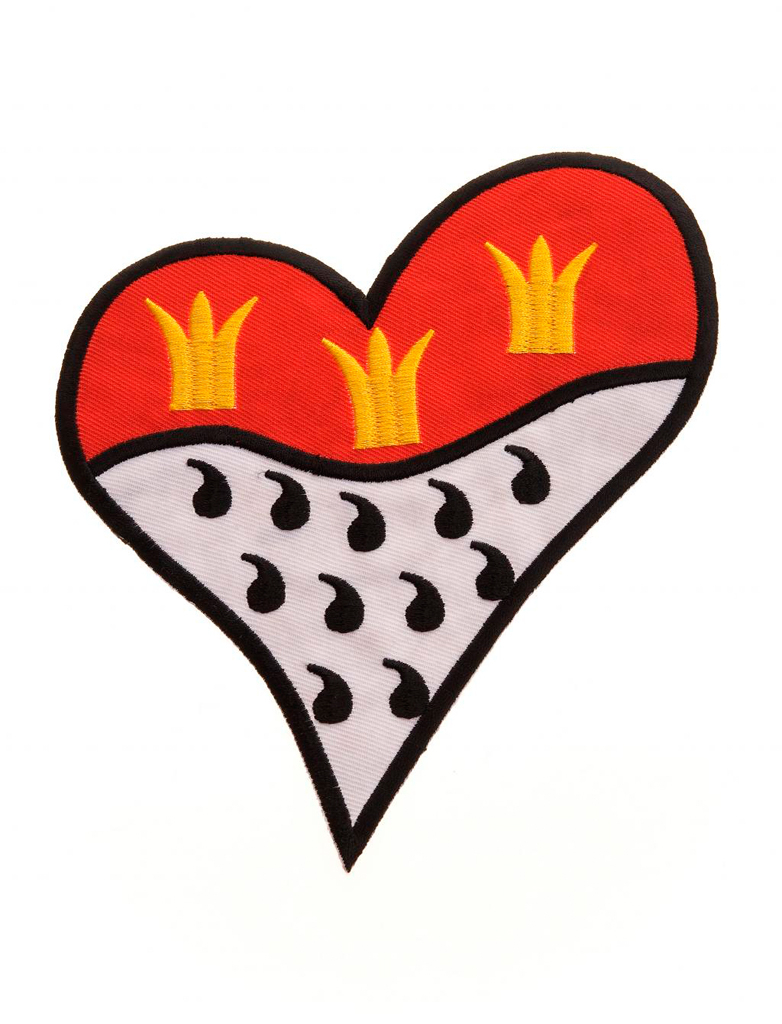Kostümzubehör Bügelpatch Kölner Wappen Herz 17cm Farbe: rot/weiß