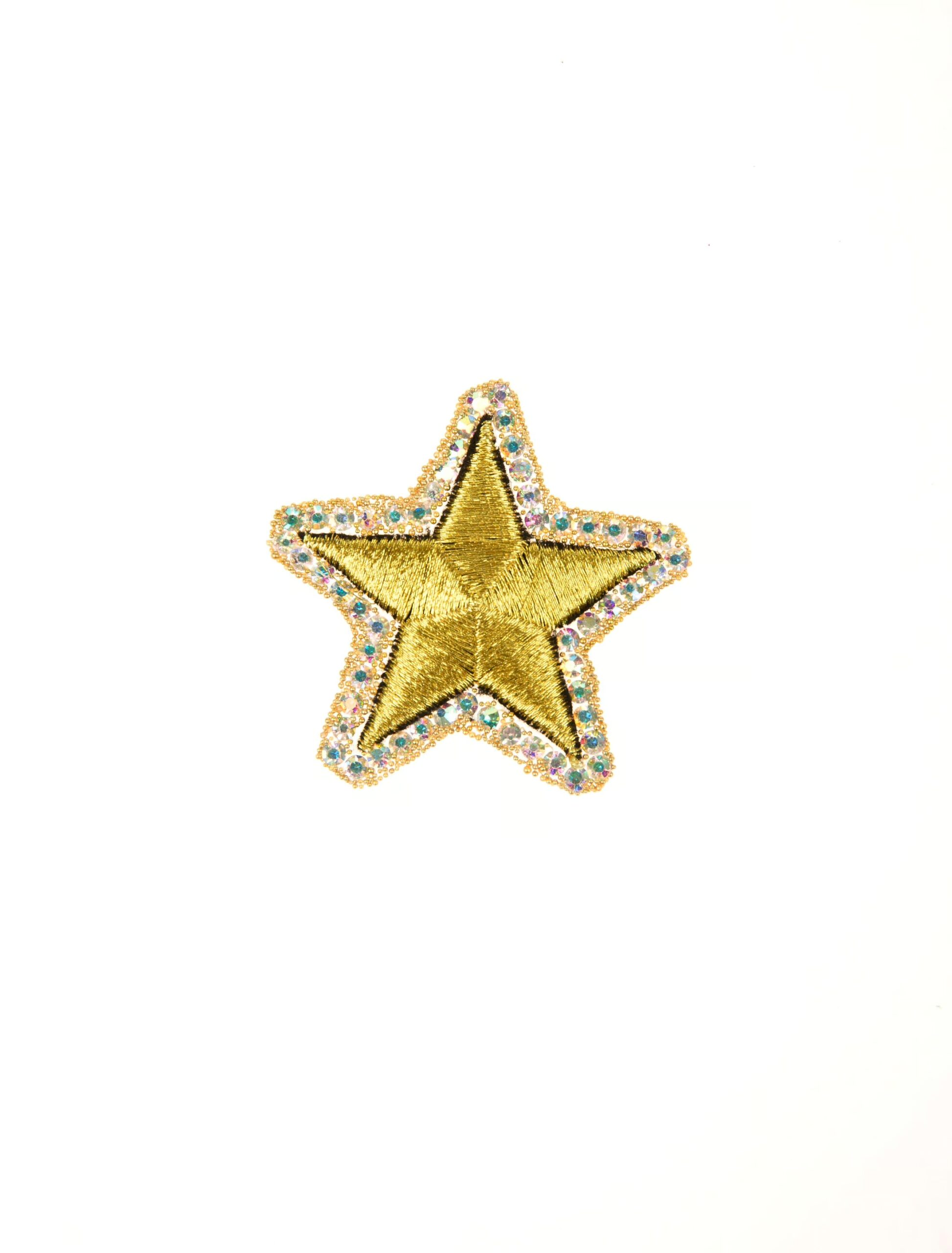 Kostümzubehör Bügelpatch Stern mit Strasssteinen Farbe: gelb