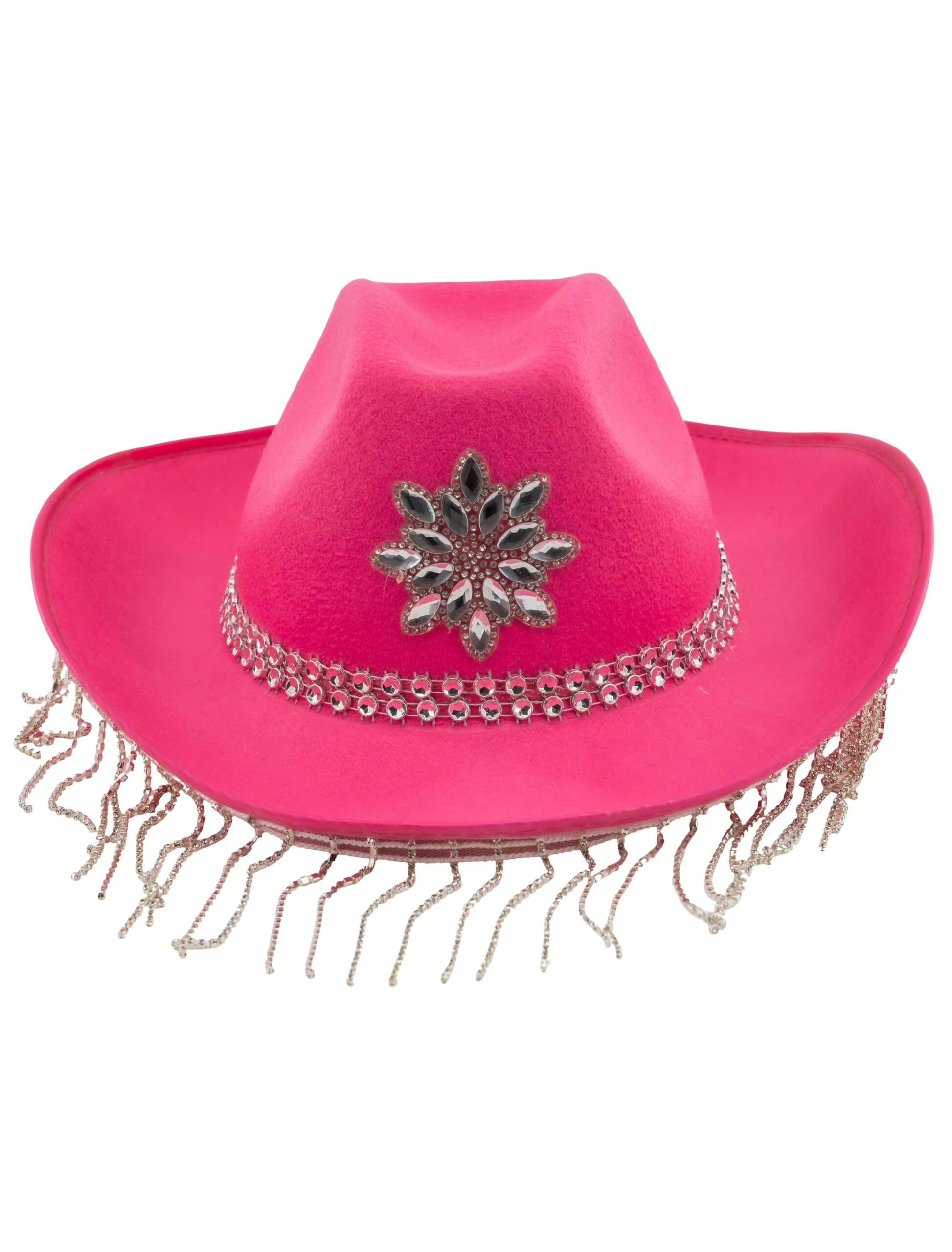 Kostümzubehör Cowboyhut mit Strassketten pink one size
