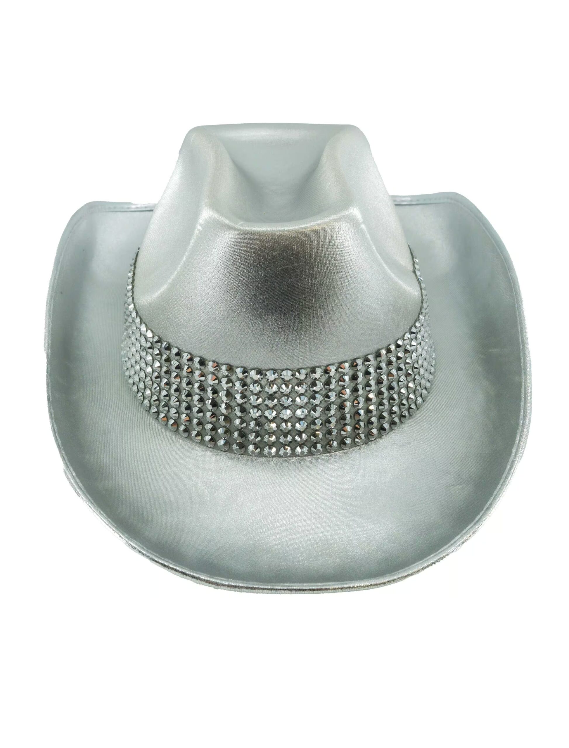 Dieser Cowboyhut mit Strasssteinen bringt Glamour in jedes Outfit. Das breite, funkelnde Band aus Strasssteinen verleiht ihm einen auffälligen, edlen Look, der sofort ins Auge fällt. Perfekt geeignet für Festivals, Mottopartys oder als besonderes Accessoire für Western-Kostüme. Durch seine stabile Form sitzt der Hut bequem und behält auch bei ausgelassenen Partys seine Form. Ein echter Hingucker für alle, die ihre Verkleidung mit einem Hauch von Glitzer und Extravaganz abrunden möchten.