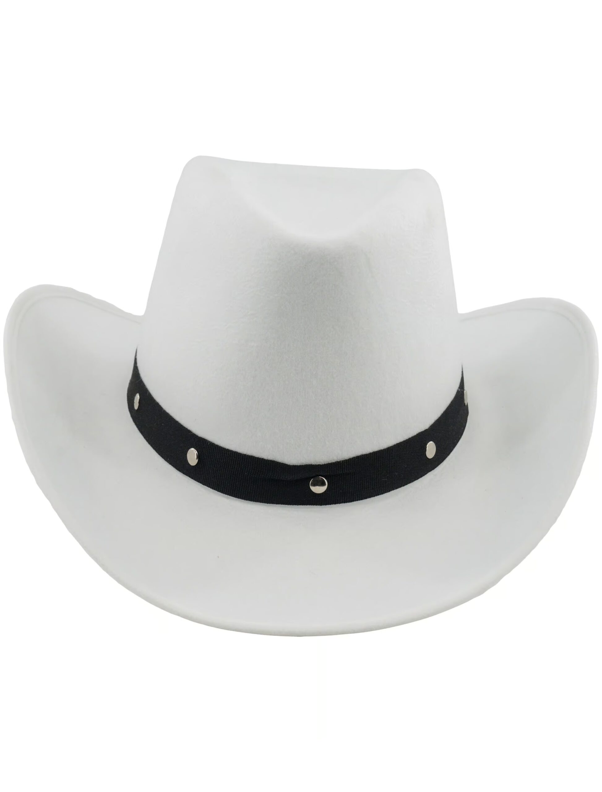 Ein geschmackvoller Hingucker ist dieser weiße Cowboyhut, der als schickes Accessoire zum Fasching und Karneval sowie auf Mottopartys Deine Western- und Cowboy Kostüme komplettiert. Den attraktiven, weißen Cowboyhut mit dem schwarzen, mit silbernen Nieten besetzten, Hutband und der charakteristischen, seitlich nach oben gebogen Krempe kannst Du für Deinen ganz persönlichen Cowboy Look mit den entsprechenden Teilen aus unserem Shop kombinieren. Mit ihm und Deinem neuen Cowboy Outfit wirst Du einfach toll aussehen.