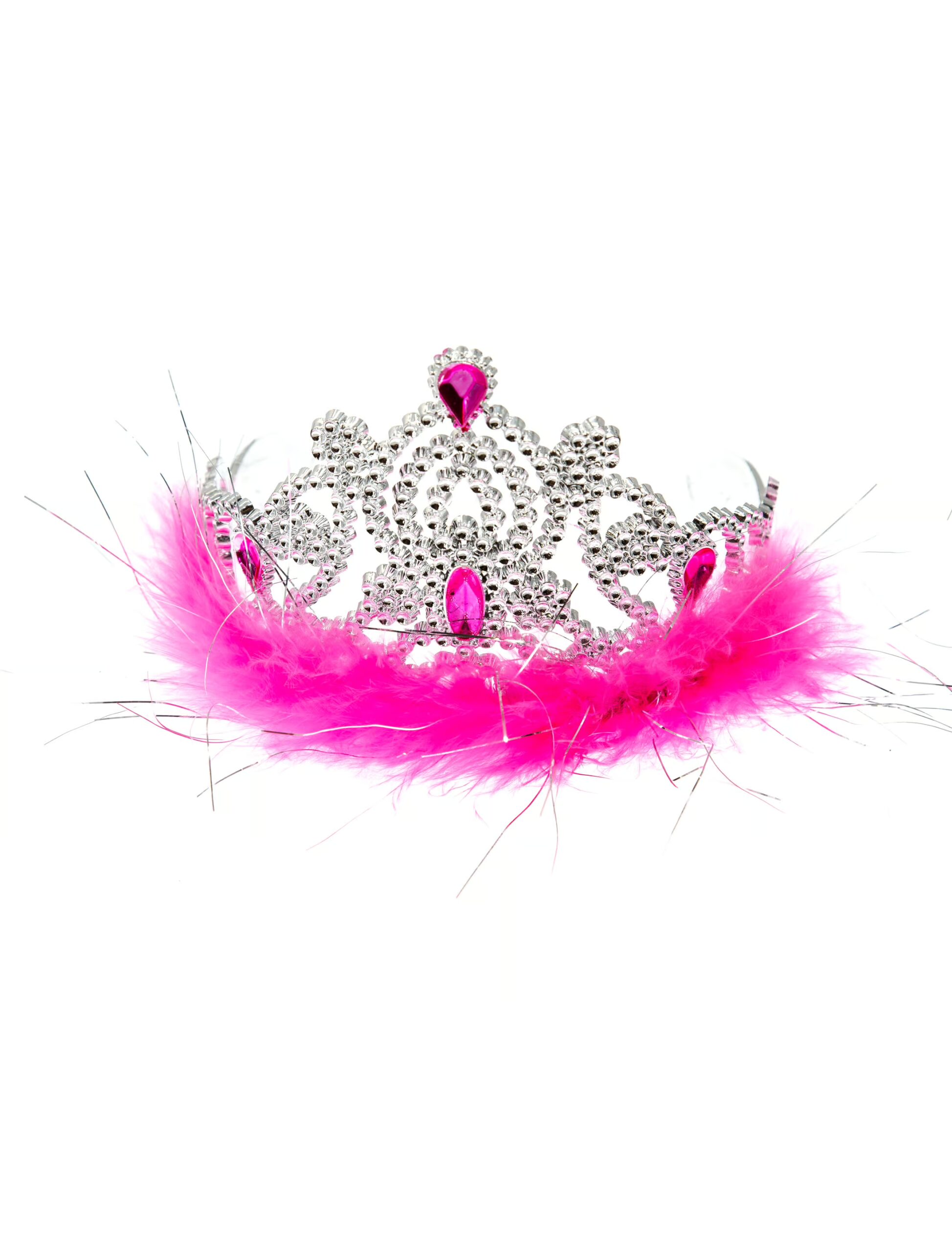 Kostümzubehör Diadem silber mit pinkem Marabu