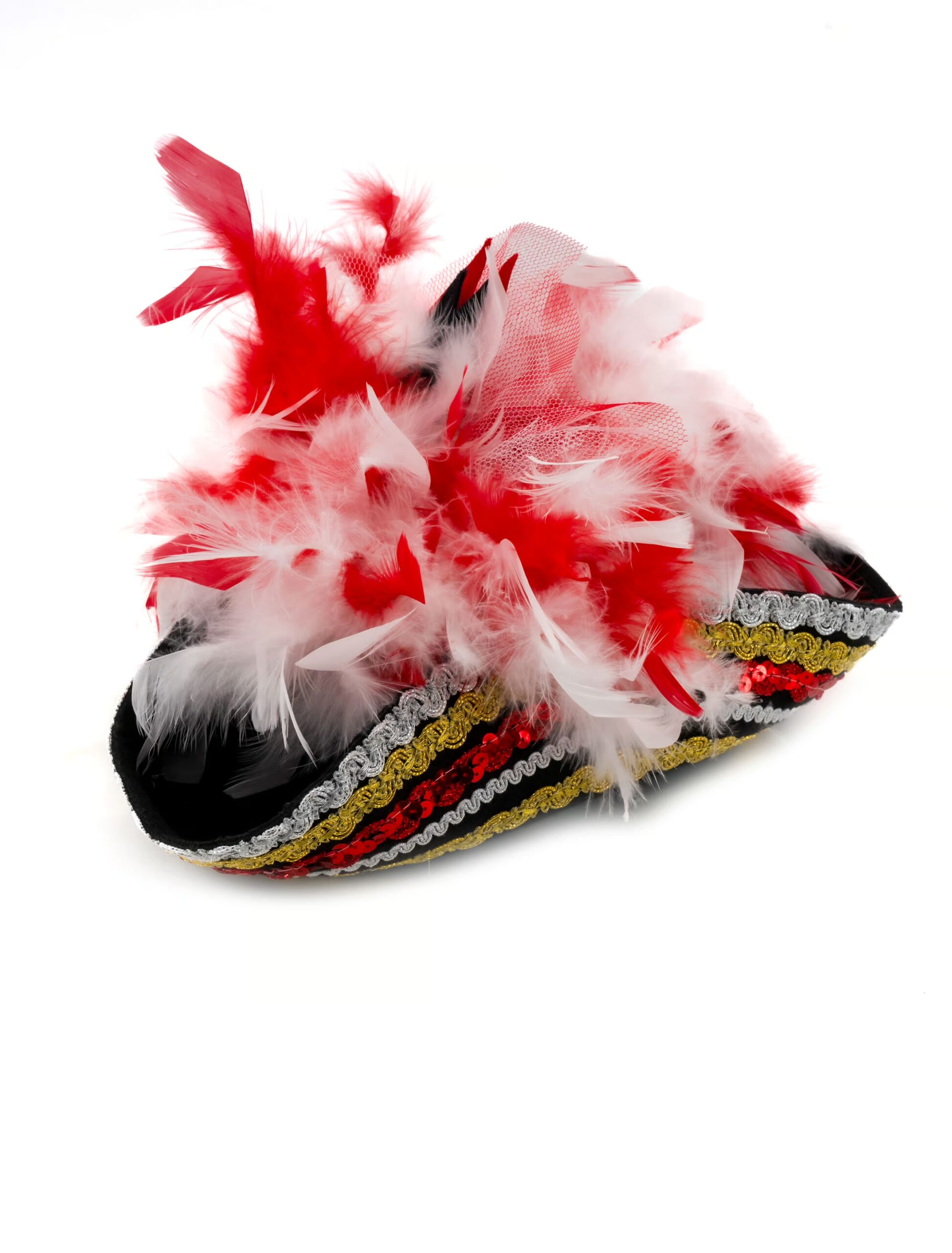 Dreispitz Dom mit Borten rot/weiß one size, ideal für Karneval & Fasching