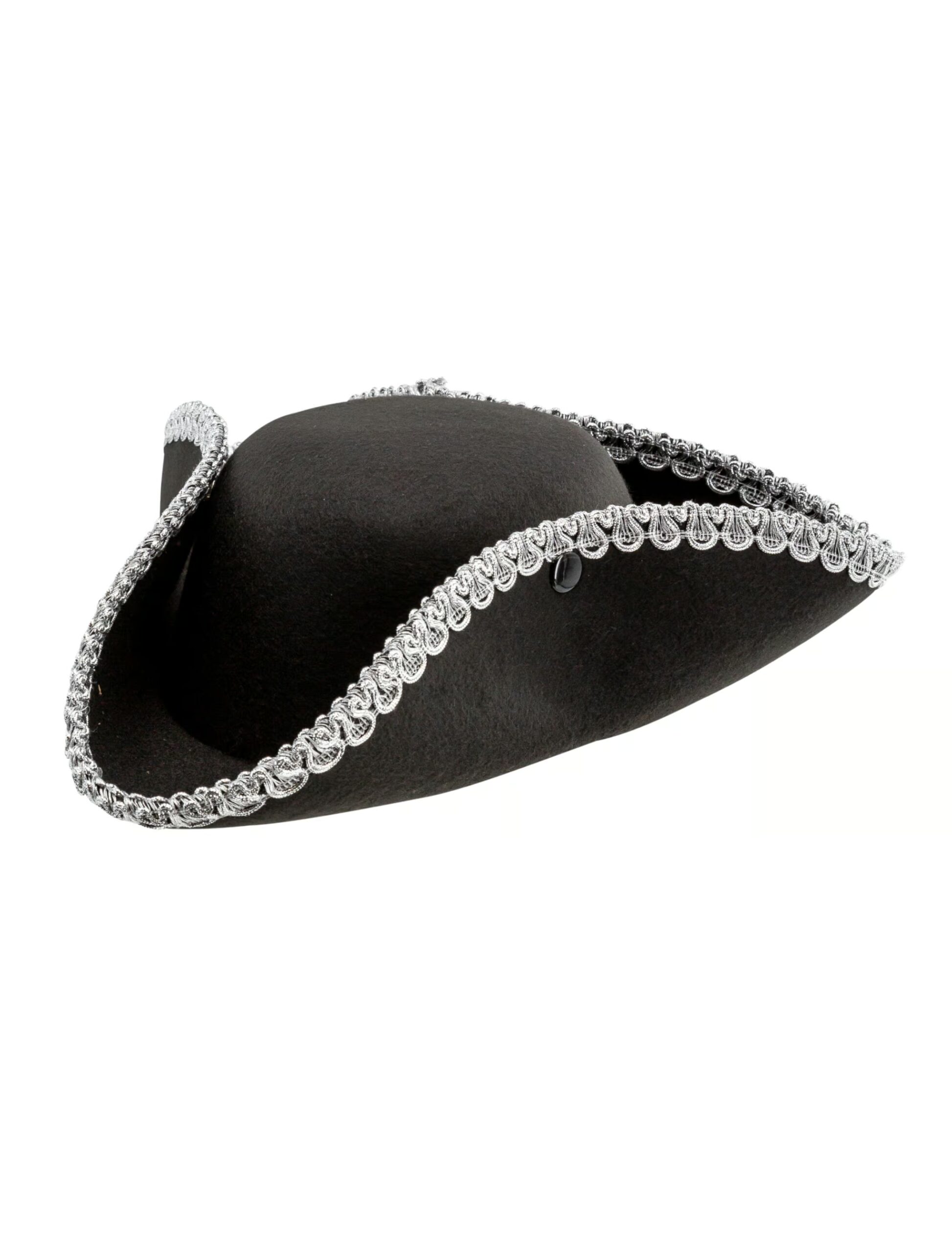 Egal, ob als Pirat, Korsar oder Freibeuter mit diesem schicken Dreispitz und einem tollen Piratenkostüm aus unserem Shop wirst zum Fasching und Karneval sowie auf Mottopartys nicht nur zum Eyecatcher, sondern auch zum Damen umschwärmten Mittelpunkt. Der schwarze Dreispitz mit der silbernen Borte an der schön geschwungenen Krempe ist ein besonders attraktives Accessoire, das Dein Piraten Outfit perfekt ergänzt.
