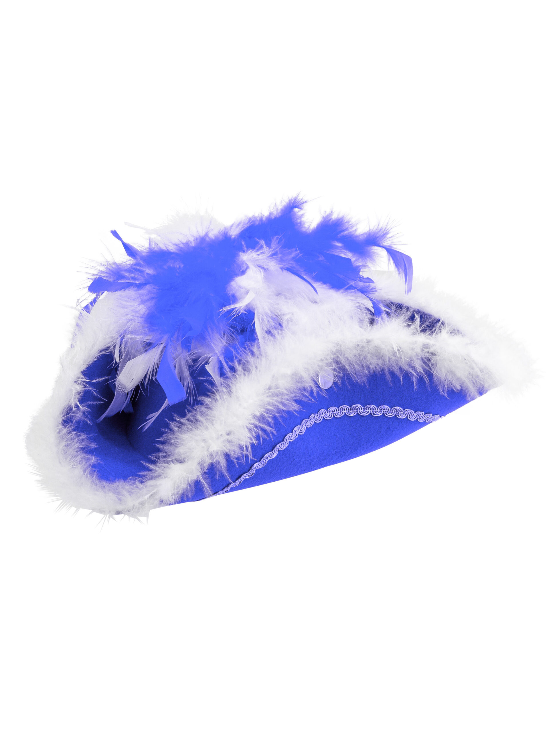 Manchmal braucht es nicht viel! Denn mit diesem extravaganten Dreispitz verwandelst Du selbst ein Basic-Outfit im Nu in ein tolles Kostüm. Der hübsche Hut für Damen und Herren ist rundum mit vielen blauen und weißen Federn verziert, die auf dem Hut ein Vogelnest bilden. Zusätzlich ist der Dreispitz mit Vogelnest mit einer edlen goldenen Borte verziert. Der perfekte Hingucker für Karneval und Gardetanz!