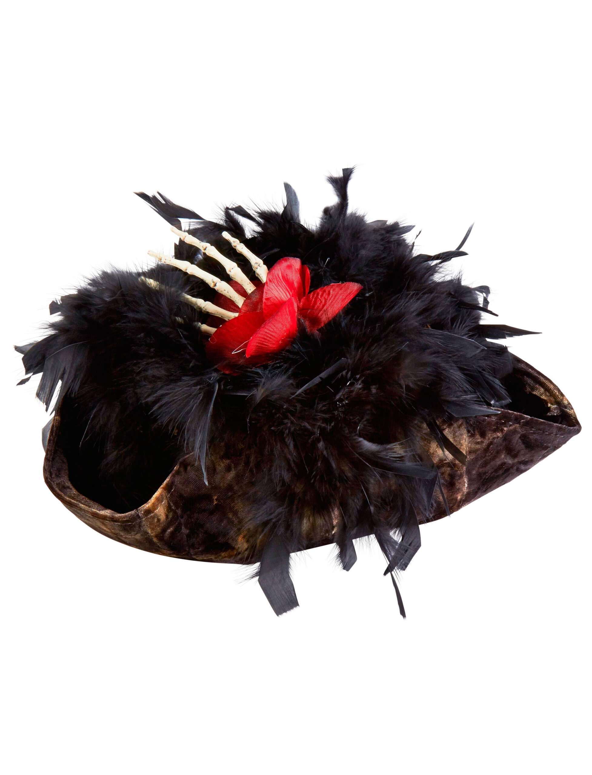 Auch für die gruseligen Kostüme gibt es den passenden Dreispitz in unserem Sortiment. Mit der Skeletthand, die keck aus den Federn schaut, erübrigt sich die Frage, in welches Genre Dein Outfit einzuordnen ist. Und auch zu Halloween kannst Du diese Kopfbedeckungen ohne weiteres wiederverwenden.