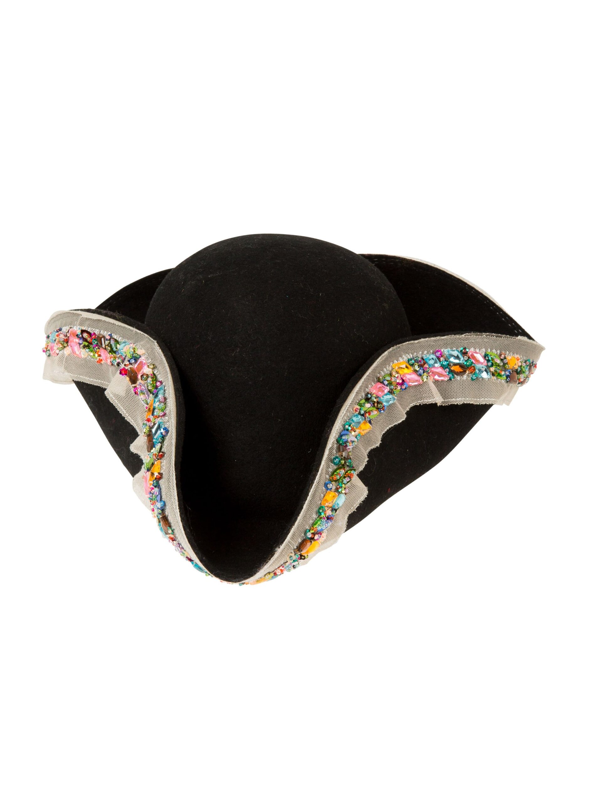 Kostümzubehör Dreispitz Wollfilz mit buntem Rand schwarz 57