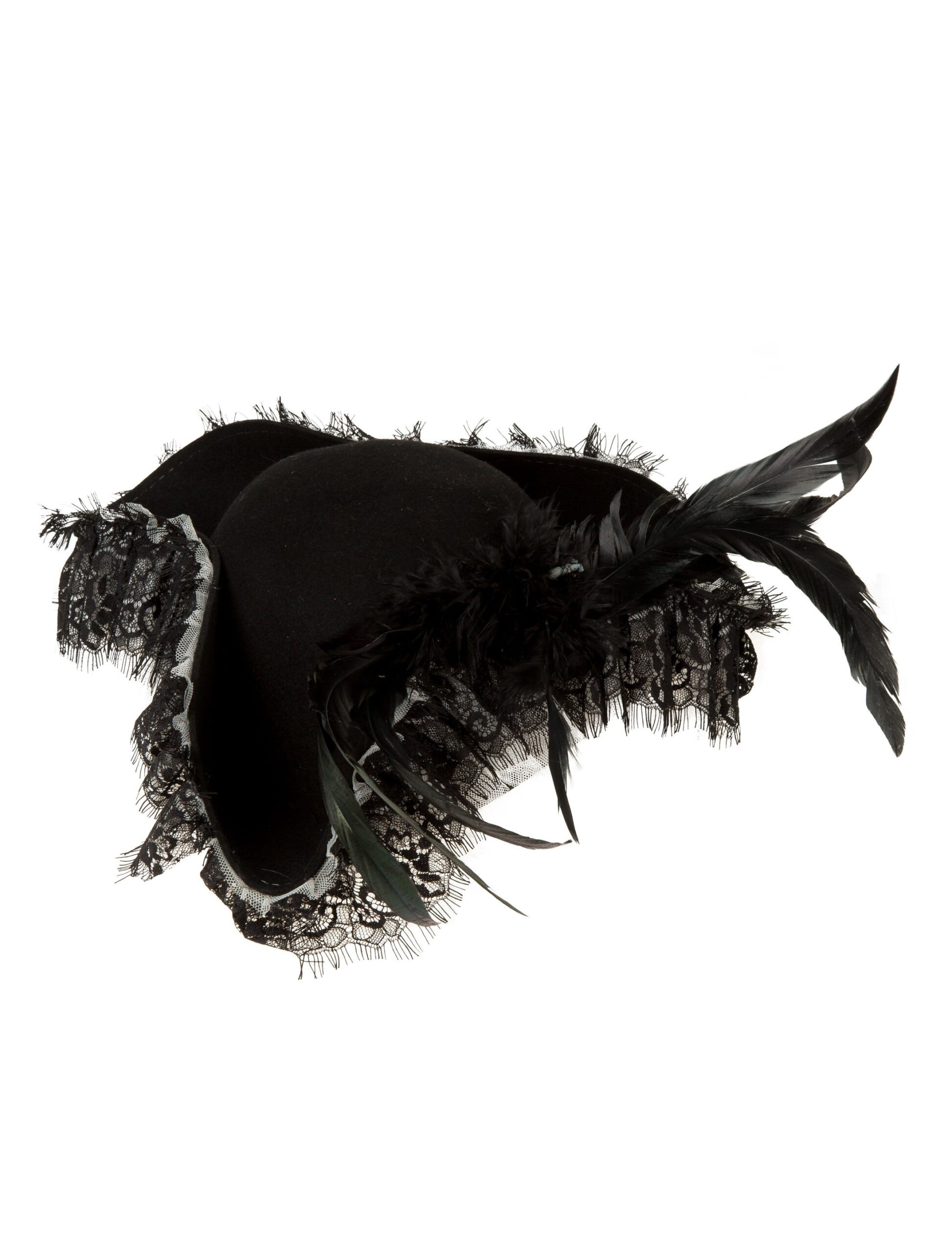 Kostümzubehör Dreispitz Wollfilz mit Rüschen schwarz 57