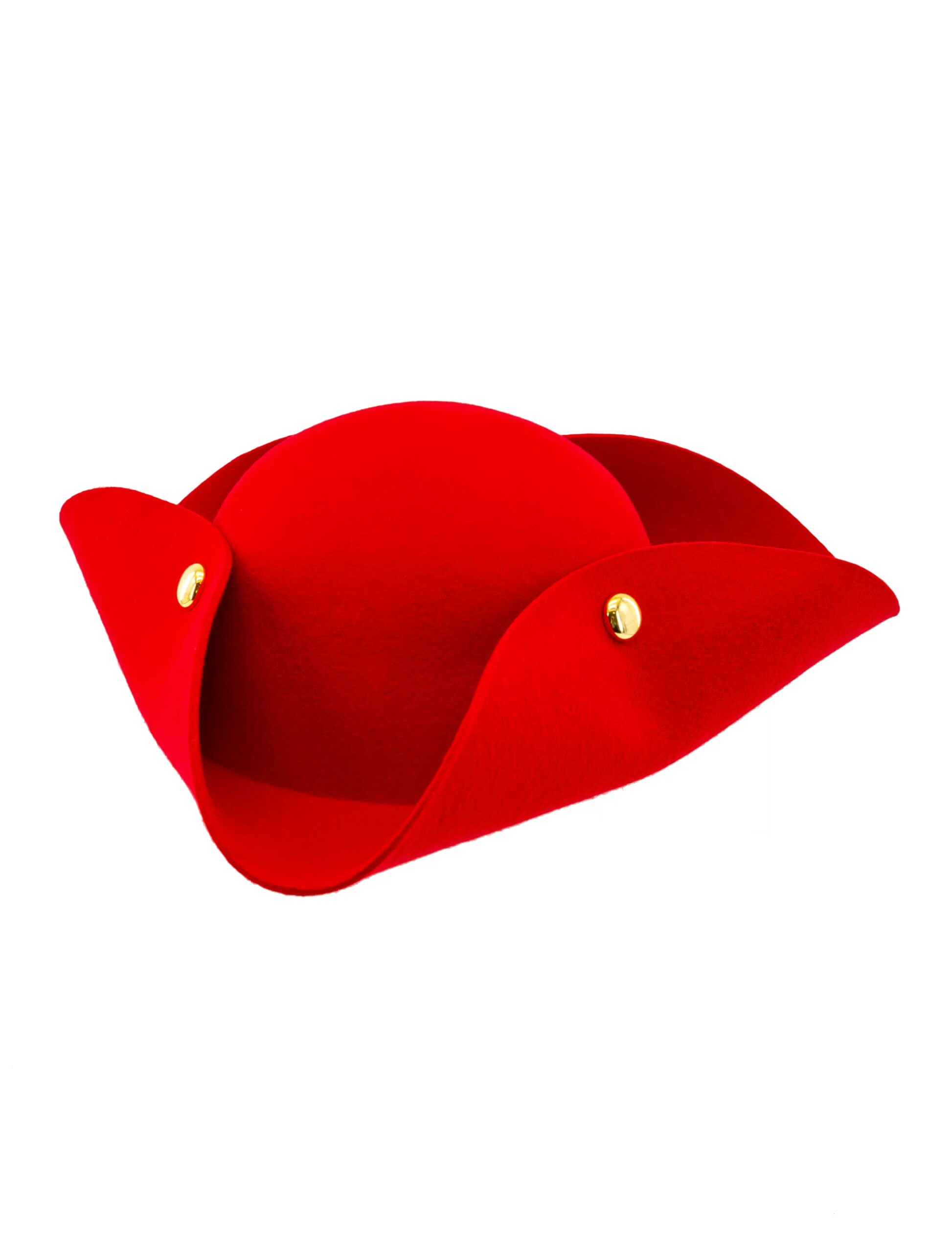 Ahoi Ihr Landratten! Dieser Dreispitz ist die perfekte Kopfbedeckung für jedes Piratinnen Kostüm. Der rote Hut aus hochwertigem Wollfilz ist biegsam und macht ordentlich was her. Die ideale Ergänzung für Dein Kostüm als furchtlose Seeräuberin. Aber auch so mancher Dichter und Denker wurde mit diesem Modell schon gesichtet! Damit unser hochwertiger Piratenhut seine Form bei der Lieferung behält, haben wir Verbindungsknöpfe beigelegt. So hast Du die Möglichkeit den Hut selber zu einem Dreispitz zu formen.