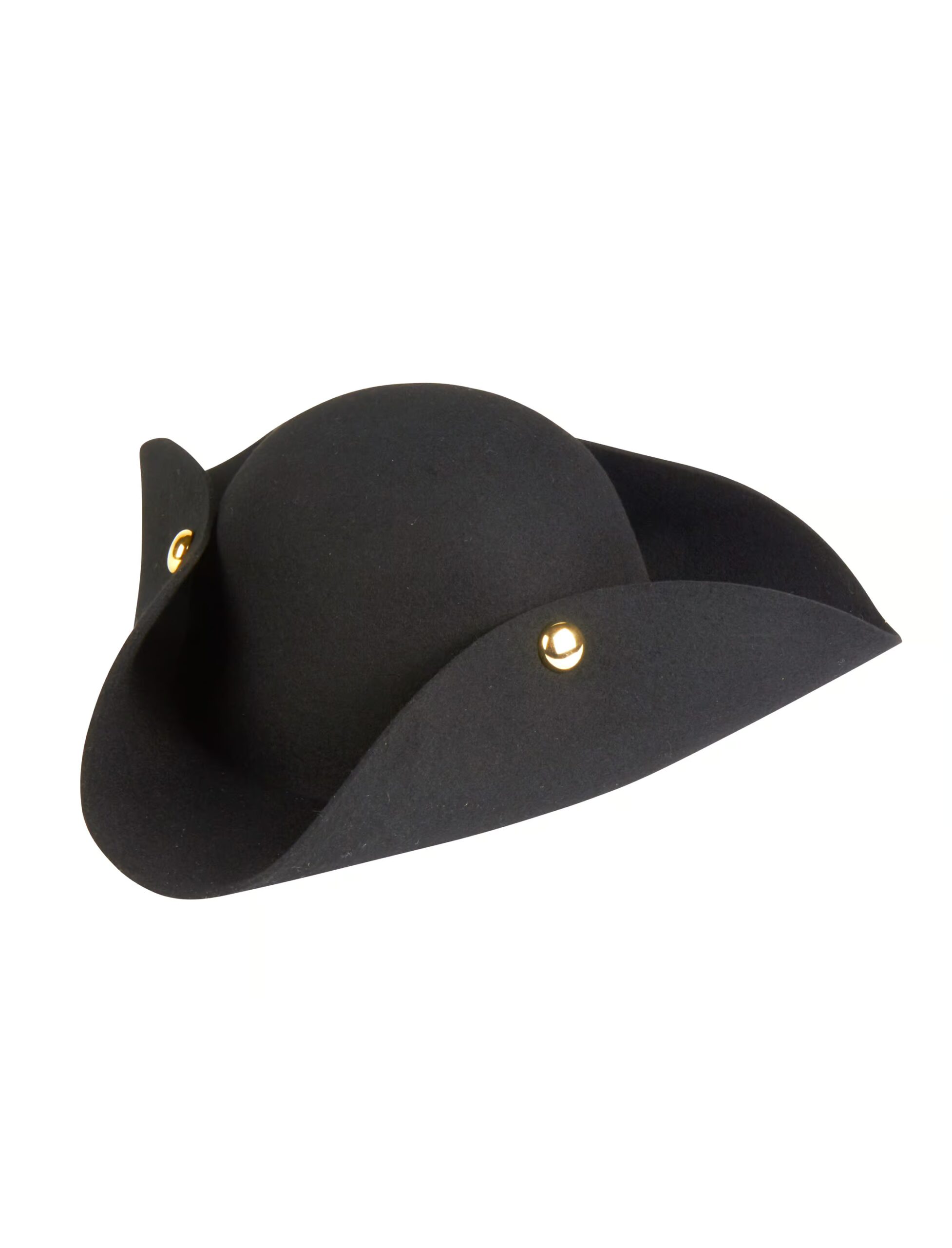 Ahoi Ihr Landratten! Dieser Dreispitz ist die perfekte Kopfbedeckung für jedes Piraten-Outfit. Der schwarze Hut aus hochwertigem Wollfilz ist biegsam und macht ordentlich was her. Die ideale Ergänzung für Dein Kostüm als furchtloser Seeräuber. Aber auch so mancher Dichter und Denker wurde mit diesem Modell schon gesichtet! Damit unser hochwertiger Piratenhut seine Form bei der Lieferung behält, haben wir Verbindungsknöpfe beigelegt. So hast Du die Möglichkeit den Hut selber zu einem Dreispitz zu formen.