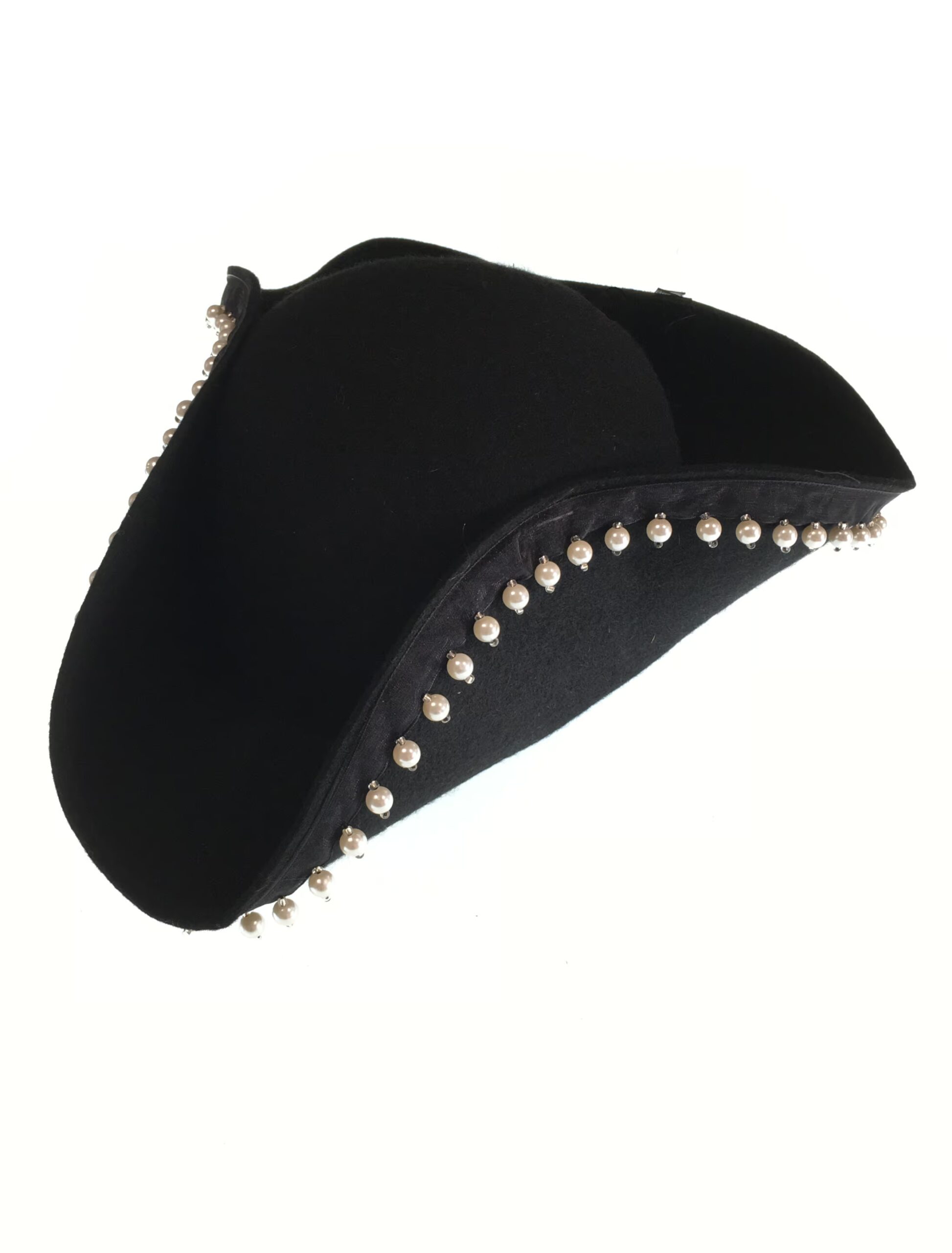 Kostümzubehör Dreispitz Wollfilz schwarz mit Perlenborte