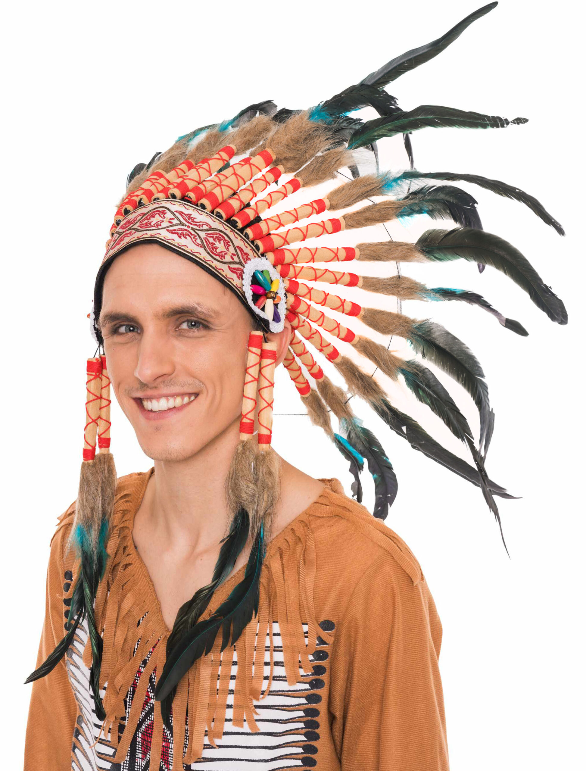 Hey, du Häuptling in spe! Mit unserem Federkopfschmuck wirst du zum unumstrittenen Anführer jeder Kostümparty, Faschingsparade oder Mottoparty. Schnapp dir unseren Federkopfschmuck Häuptling und regiere die Feier mit einer Extraportion Coolness!