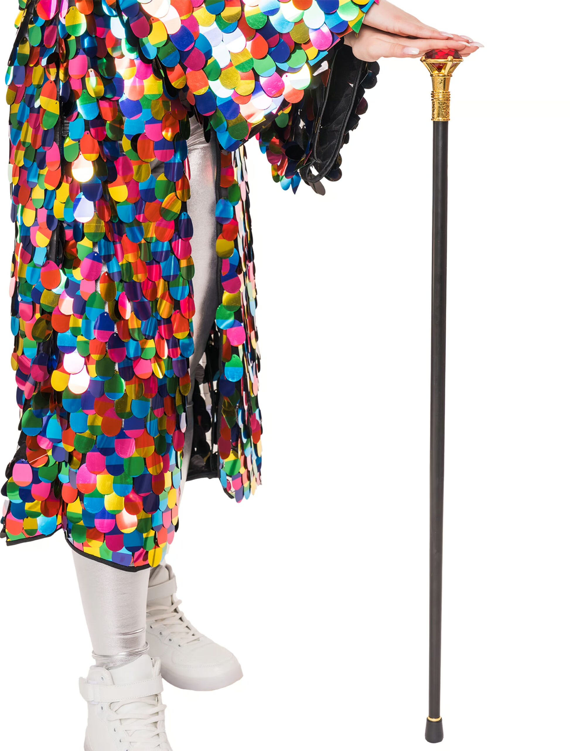 Egal, ob du als extravaganter Gangsterboss oder luxuriöser Händler unterwegs bist – mit unserem Gehstock zeigst du, dass du den Glanz und Glamour des Lebens voll im Griff hast. Der edle Knauf mit einem funkelnden Diamanten ist ein echter Hingucker. Er schimmert im Licht, als hätte er gerade den Tresor eines Milliardärs verlassen. Ob du deinen Gang perfektionierst, dich lässig auf ihn stützt oder ihn einfach als Statement-Piece trägst – dieser Gehstock sorgt garantiert für Gespräche. Mach jede Veranstaltung zu deiner persönlichen Glamour-Show. Glitzern war noch nie so einfach!