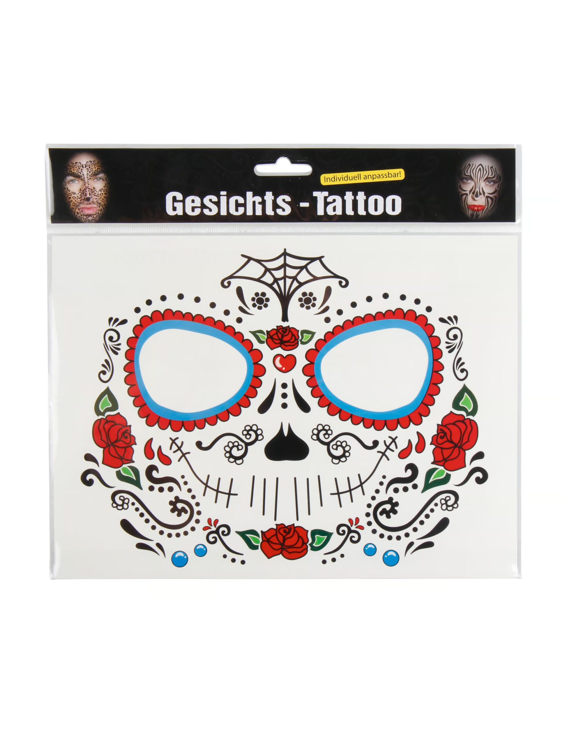 Unsere Gesichtstattoos sind eine echte Alternative zur klassischen Schminke! Die einzelnen Elemente lassen sich ganz einfach auftragen und können an beliebigen Stellen platziert werden. Das spart jede Menge Zeit und das Ergebnis kann sich wirklich sehen lassen. Und das Beste: das Tattoo lässt sich auch ganz leicht wieder entfernen. Die ideale Ergänzung für Dein Halloween-Outfit!