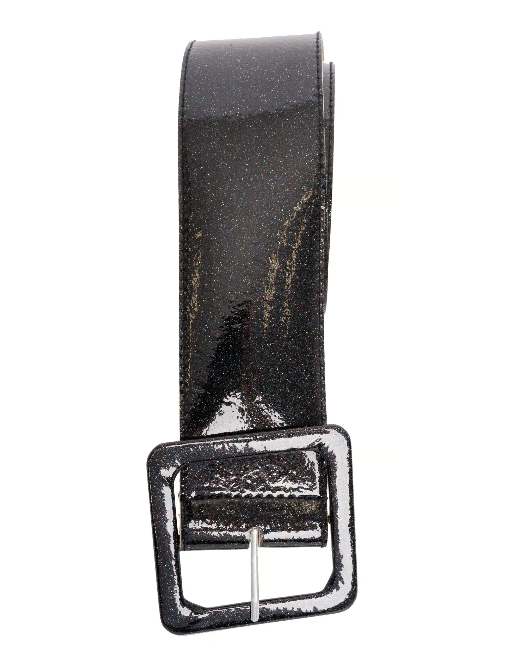 Du kannst gar nicht genug von Glamour und Glitzer bekommen? Dann ist dieser schwarze Gürtel ein tolles Must-Have für Dich. Er ist mit schillerndem Glitzer verziert und lässt sich bequem durch eine ebenfalls schwarze Schnalle schließen. Er passt perfekt zu 80er, 90er Jahre Kleidern und zu Jeans und verleiht jedem Look im Nu das gewisse Etwas! Viel zu schade, ihn nur auf Motto- und Karnevalspartys zu tragen!