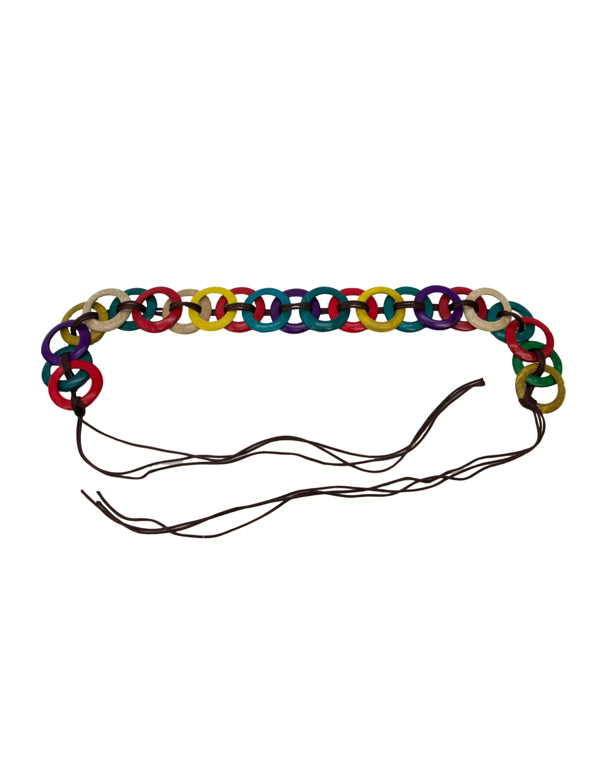 Ein stylisches Accessoire im echten Hippie-Look! Unser Gürtel besteht aus vielen bunten Kreisen, die kunstvoll aneinander gereiht und mit einer Schnur verbunden sind. Diese Schnur dient nicht nur zur Befestigung der Kreise, sondern auch als praktischer Verschluss – so lässt sich der Gürtel individuell anpassen und locker um die Hüfte binden. Perfekt geeignet für Karneval, Sommerfeste oder jede Motto-Party mit 70er-Jahre-Feeling!