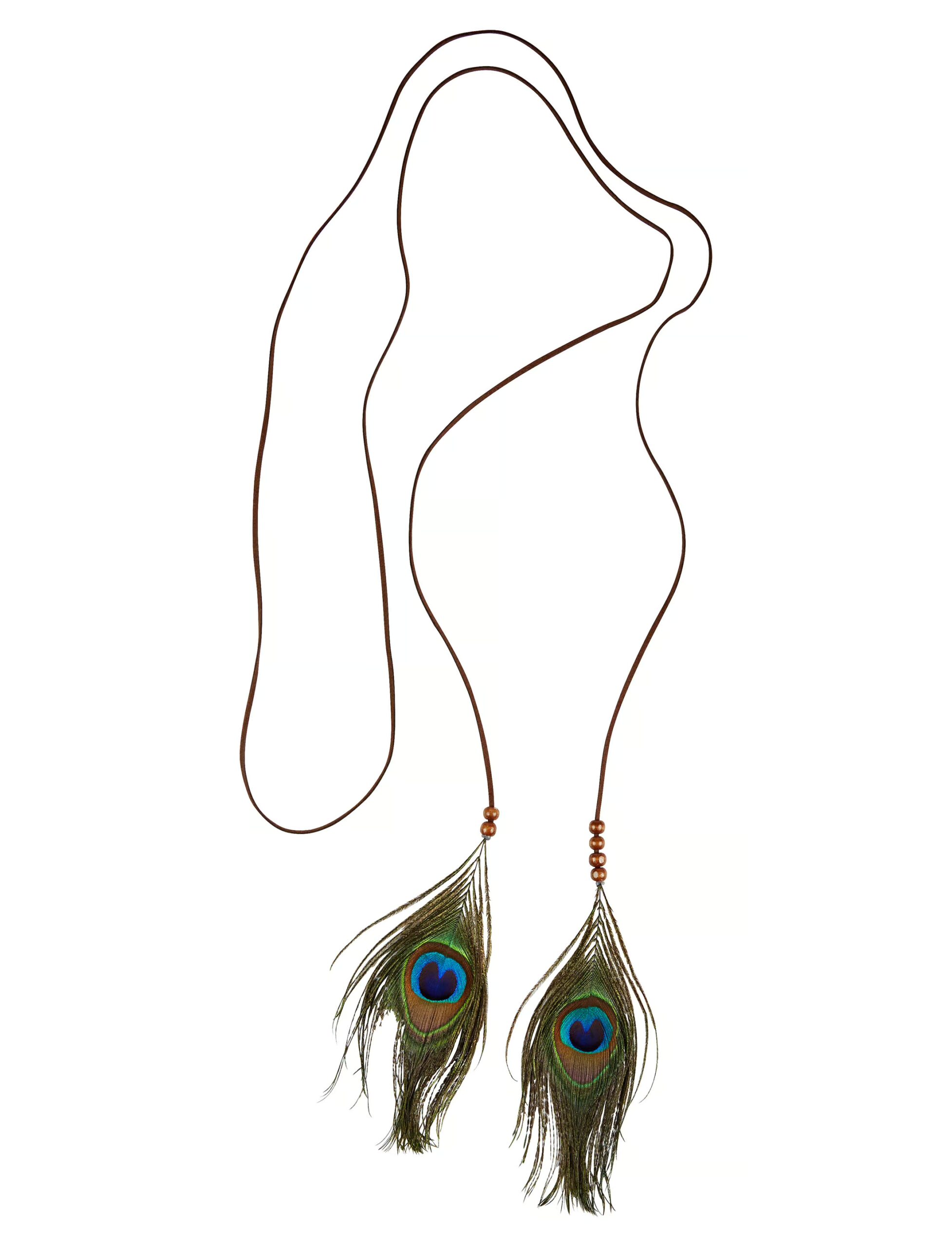 Pfauenfedern sind nicht nur wunderschön anzusehen, sie haben auch etwas Magisches an sich. Sie passen besonders gut zu IndianerKostümen. Diesen Gürtel aus Kunstleder und Pfauenfedern kannst Du zum Beispiel ganz dekorativ um Deine Hüften schwingen, oder ihn Dir auch um den Hals legen. Toll sieht es auf jeden Fall aus.