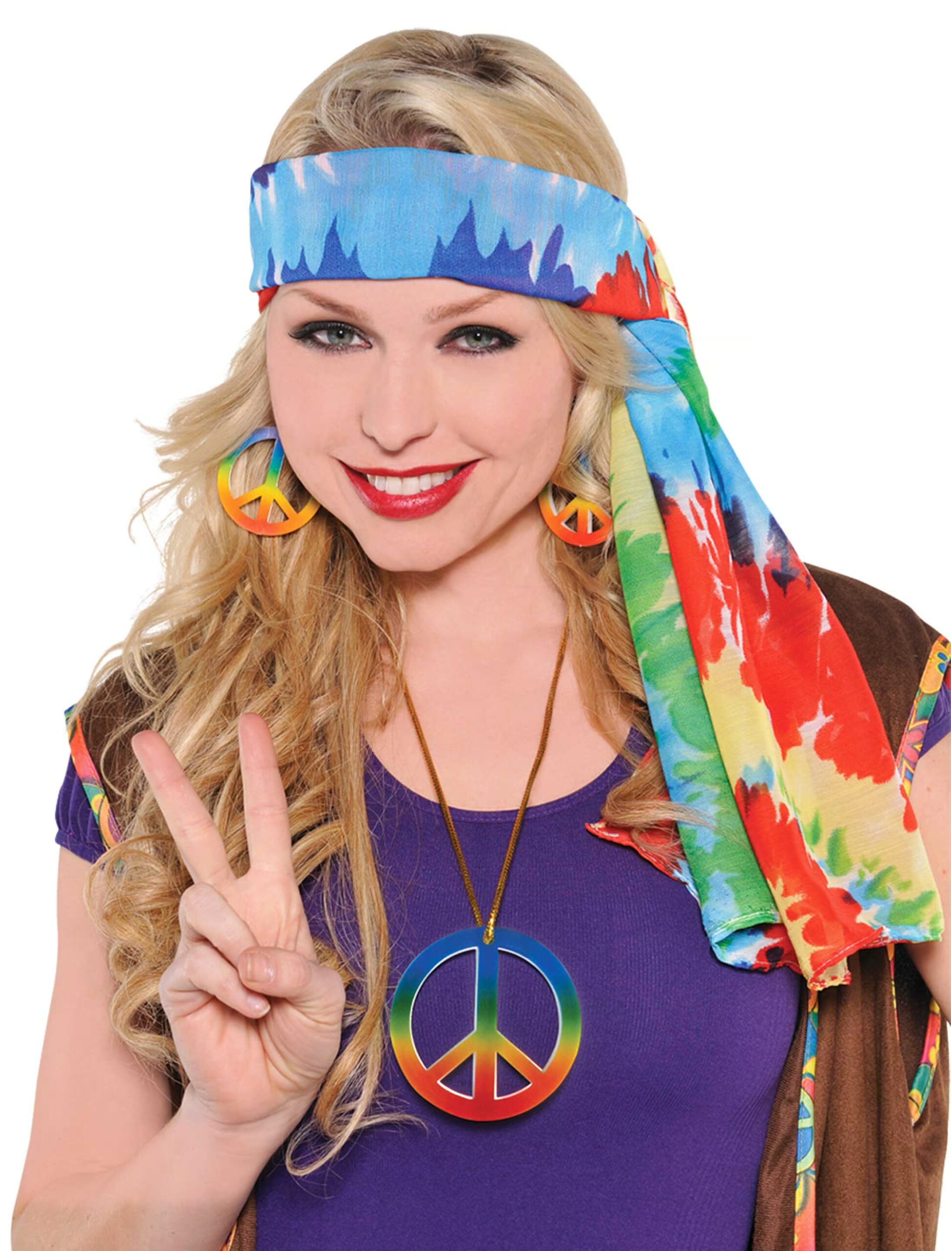 Dein Kostüm steht ganz im Motto des Friedens? Dann solltest Du beim Kopf beginnen: Mit diesem Hippie Haarband in bunten Farben verleihst Du jedem Flower-Power- und Blumenmädchen-Kostüm den letzten Schliff! Sieht nicht nur toll aus, sondern hält auch Dein Haar perfekt zusammen.